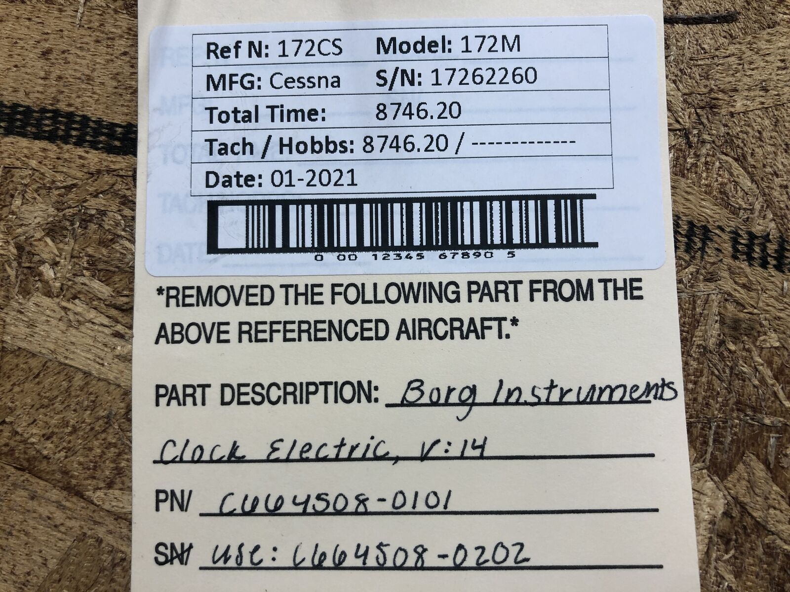 C664508-0101 (Use: C664508-0202) Cessna 172M Borg Inst Electric Clock (V: 14)