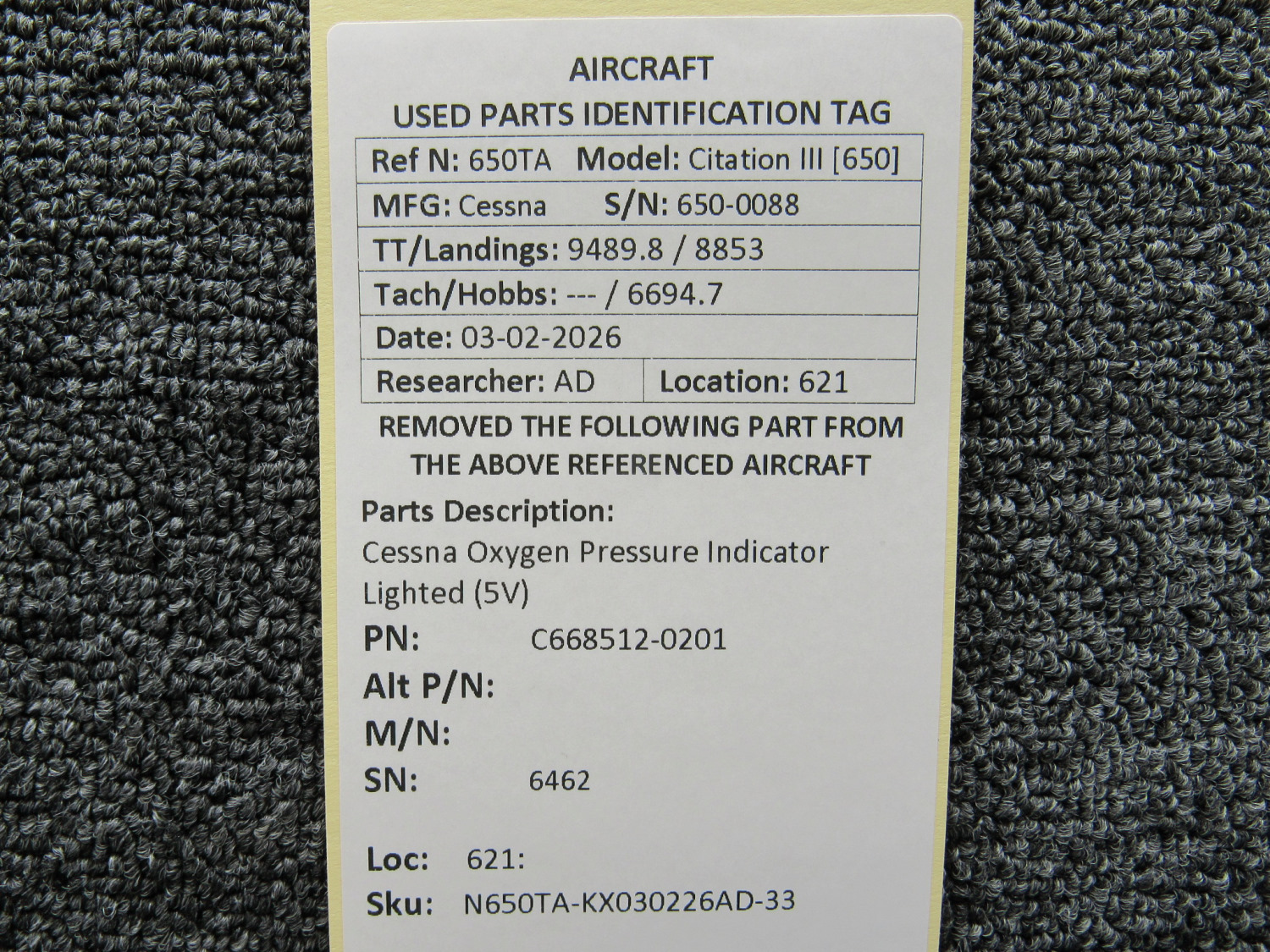 Every part is carefully inspected throughout our process and several times before it goes online. Most items are sold as-removed, just as they came off the aircraft. These parts are not functionally tested. What we do provide is clear photos, full traceability when available, pricing that reflects the as-removed condition, and a no-nonsense 90-day return window.