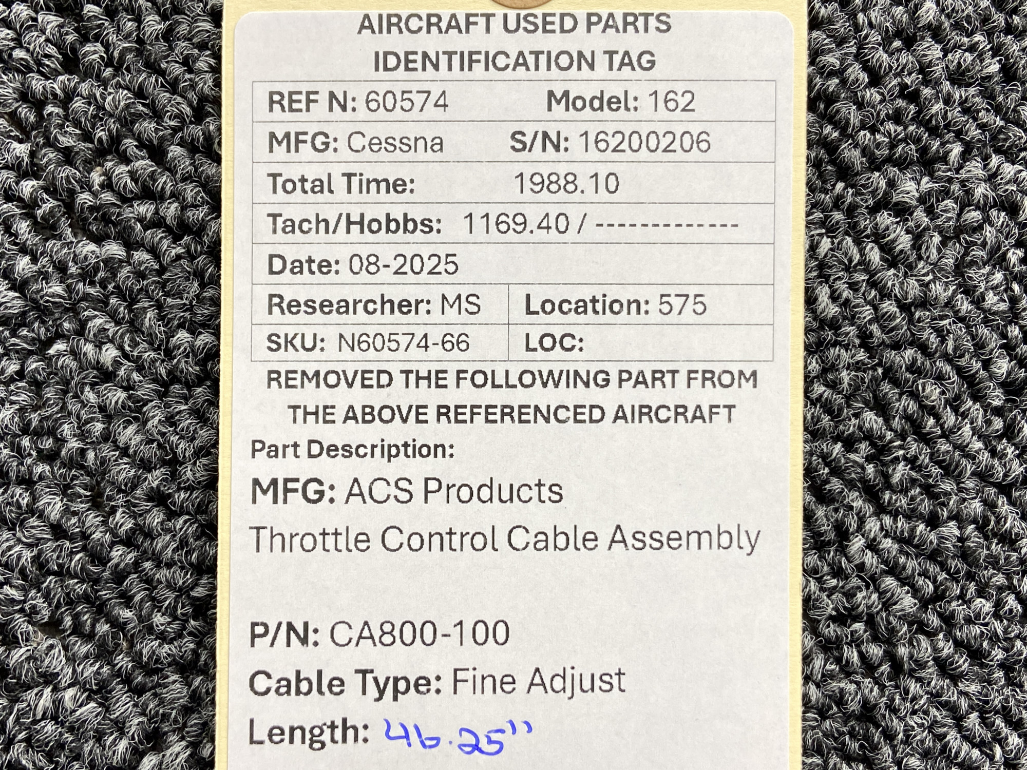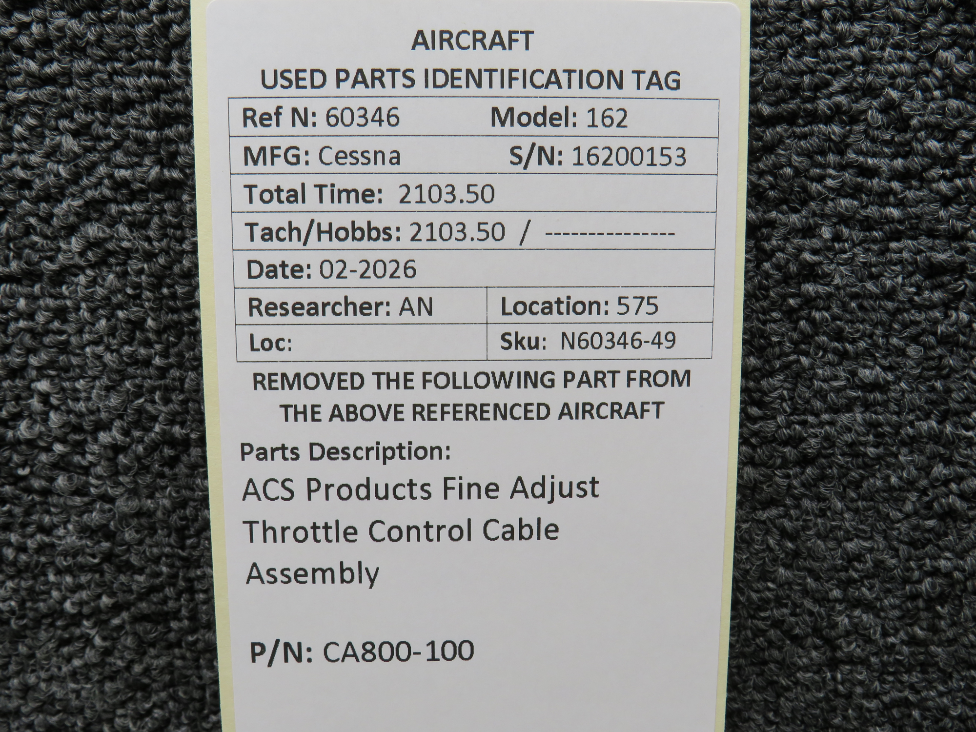 Every part is carefully inspected throughout our process and several times before it goes online. Most items are sold as-removed, just as they came off the aircraft. These parts are not functionally tested. What we do provide is clear photos, full traceability when available, pricing that reflects the as-removed condition, and a no-nonsense 90-day return window.