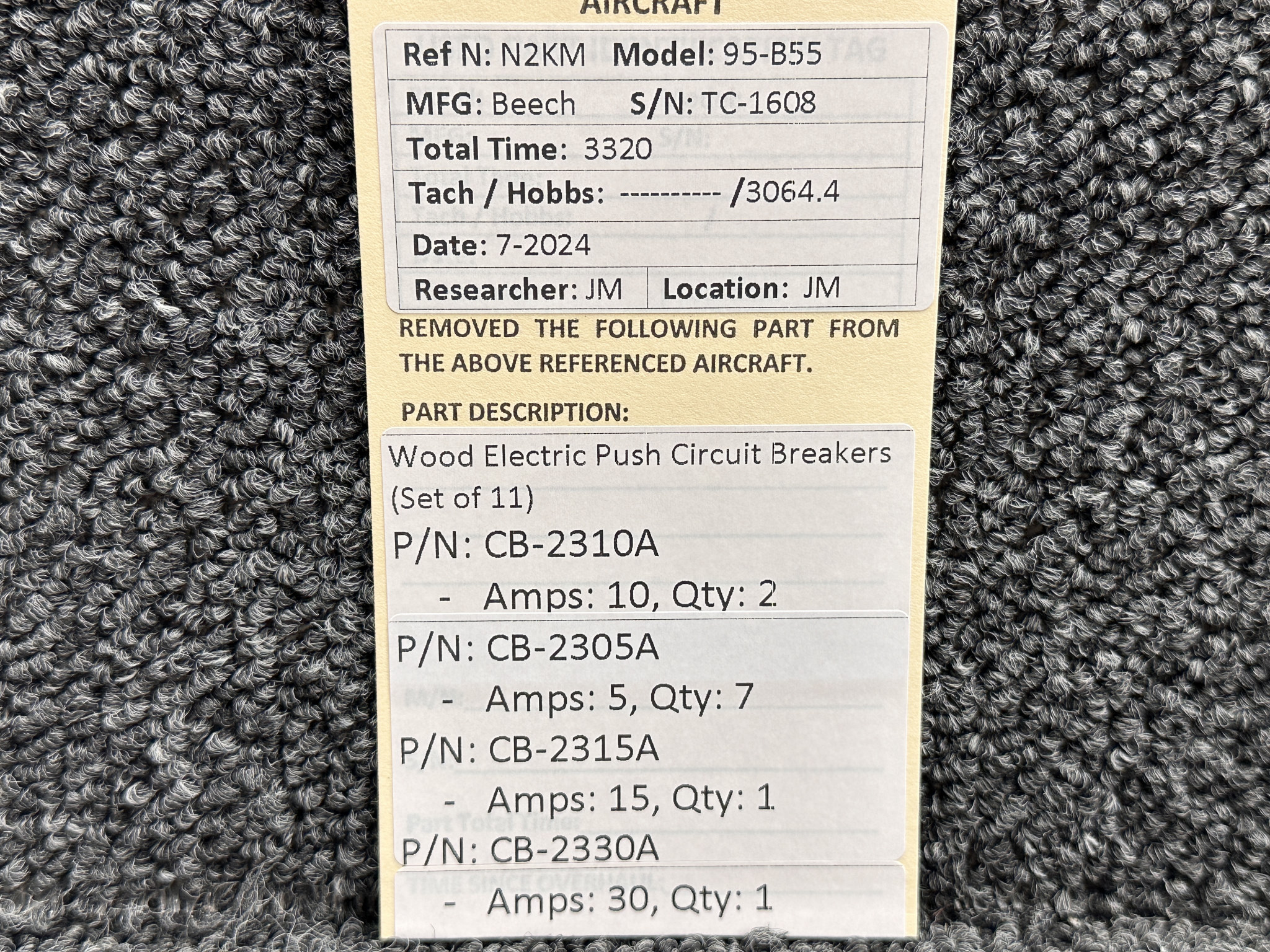- Part Number: CB-2305A (Amps: 5, Quantity: 7)