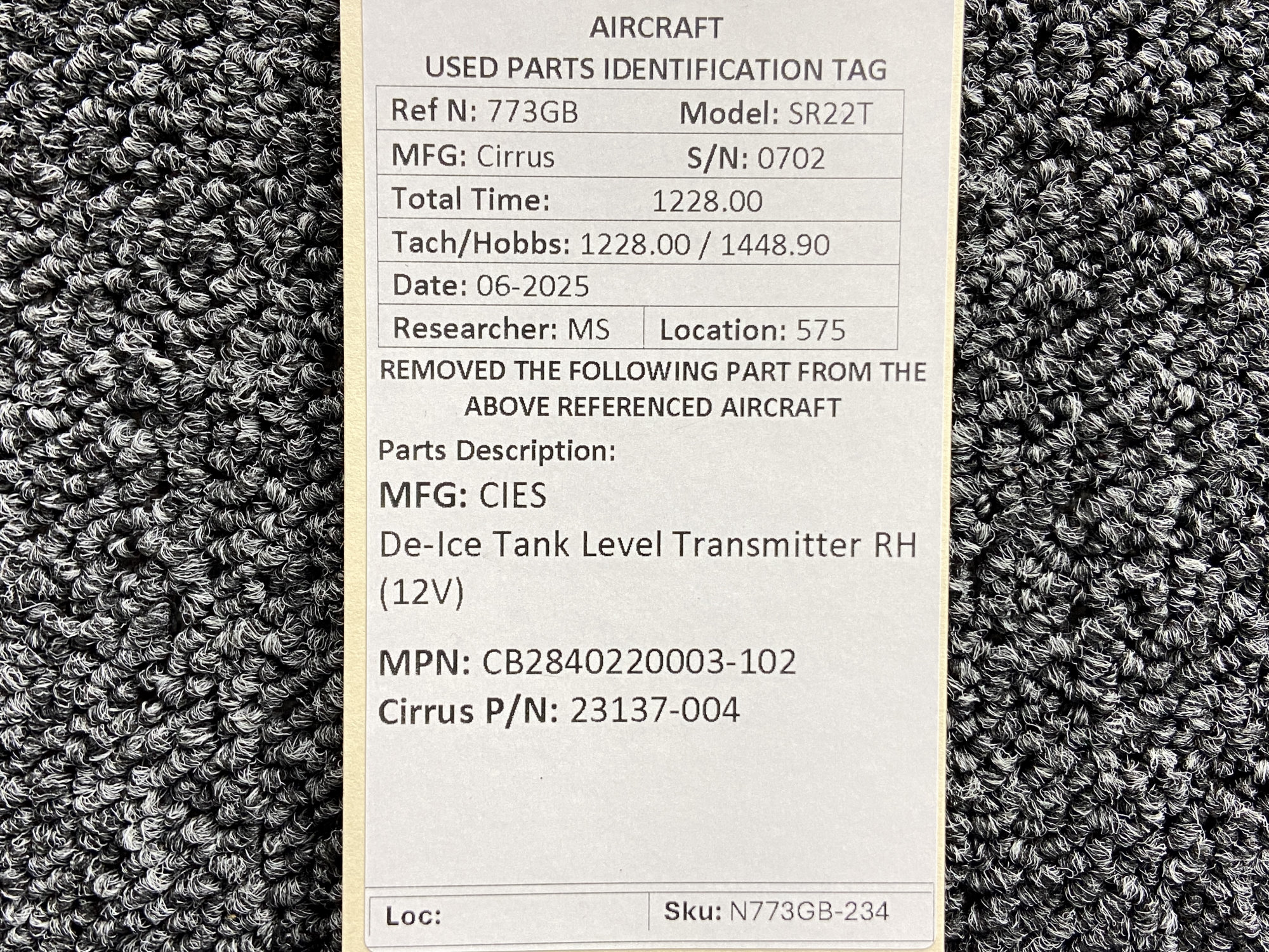 Unless specifically noted, most of our used airplane parts are sold in the condition they were removed, which means you should expect the usual signs of wear and tear.