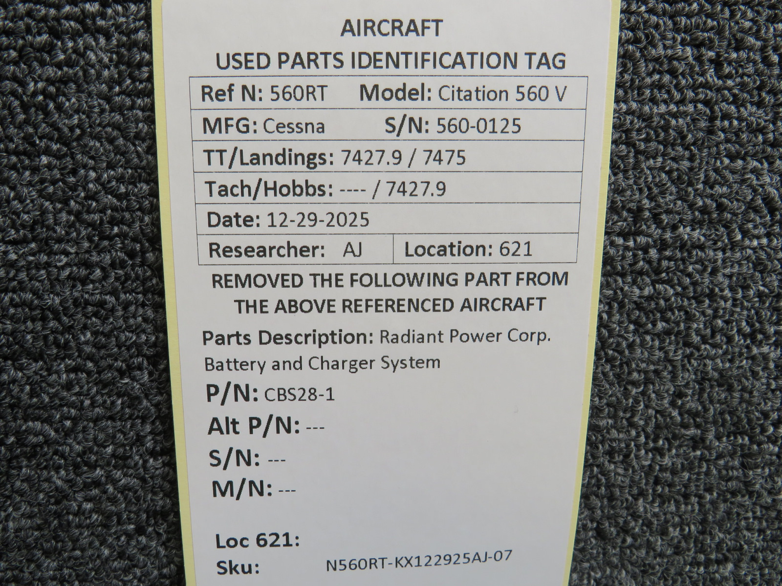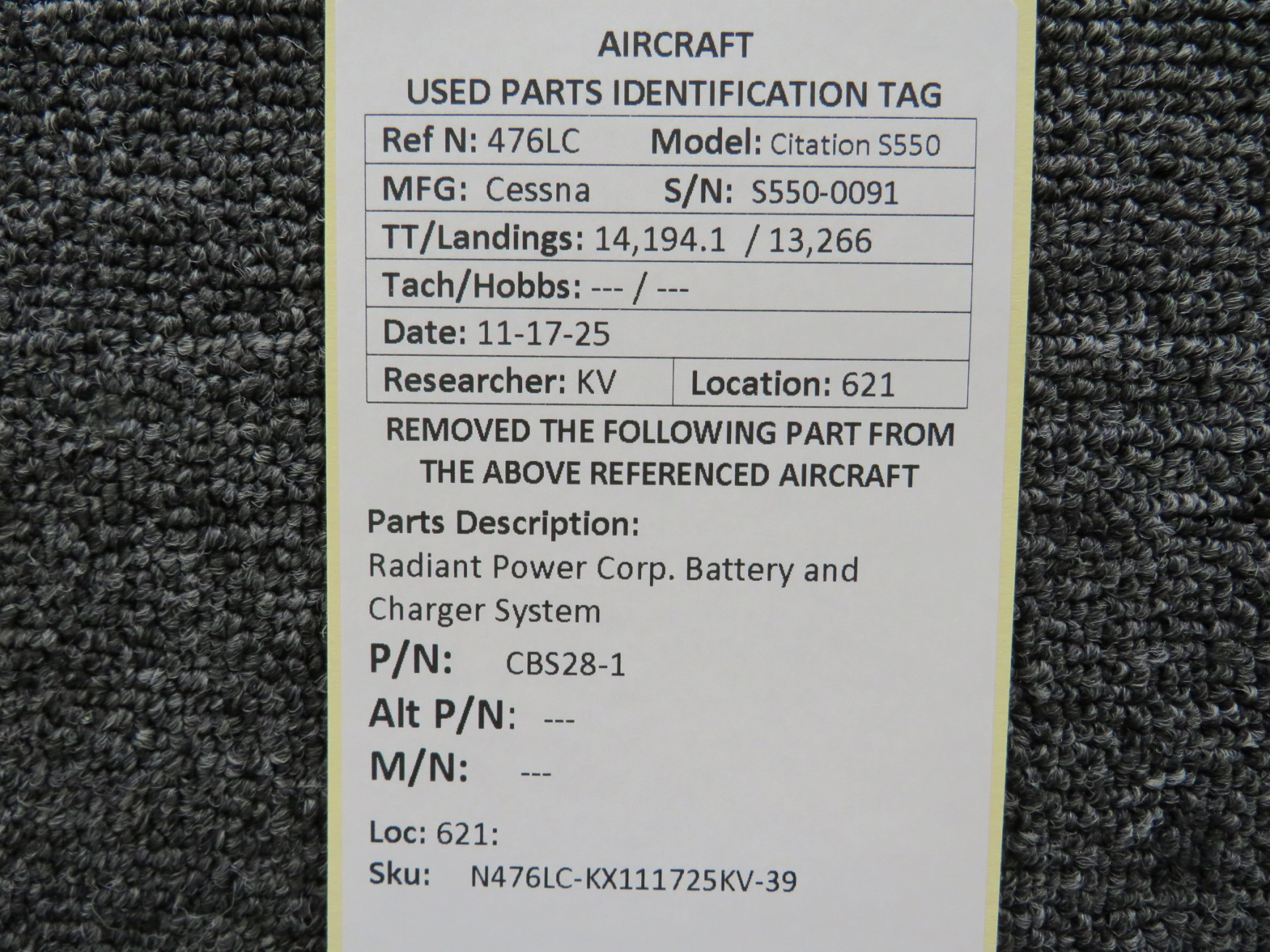 Unless specifically noted, most of our used airplane parts are sold in the condition they were removed, which means you should expect the usual signs of wear and tear.