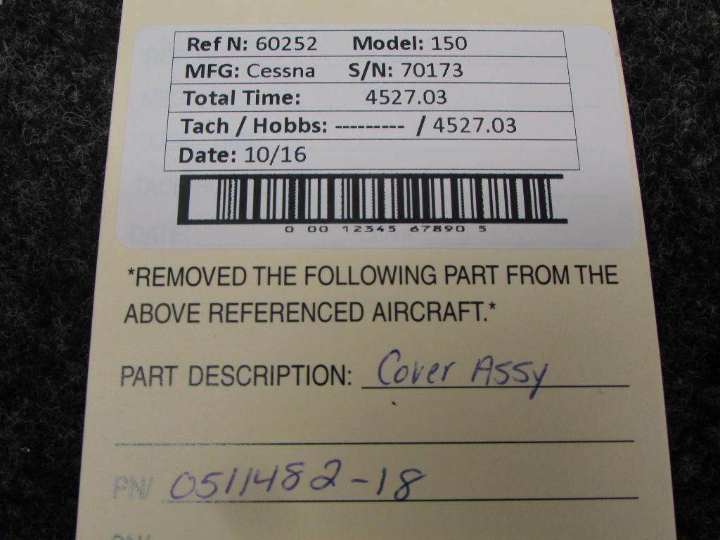 Attention International Buyers: We routinely export aircraft parts to destinations around the world. All import duties, taxes, and any other charges related to importing parts to your country are not included in the price of the item or shipping charges, these are 100% the responsibility of the buyer. Please check with your country's customs office to help determine what these additional costs will be prior to purchasing. We do not mark merchandise value below purchase value nor mark items as "gifts" as both U.S. and international law strictly prohibits this. We do not ship to forwarding shipping stations. A business or residential address is required for delivery.