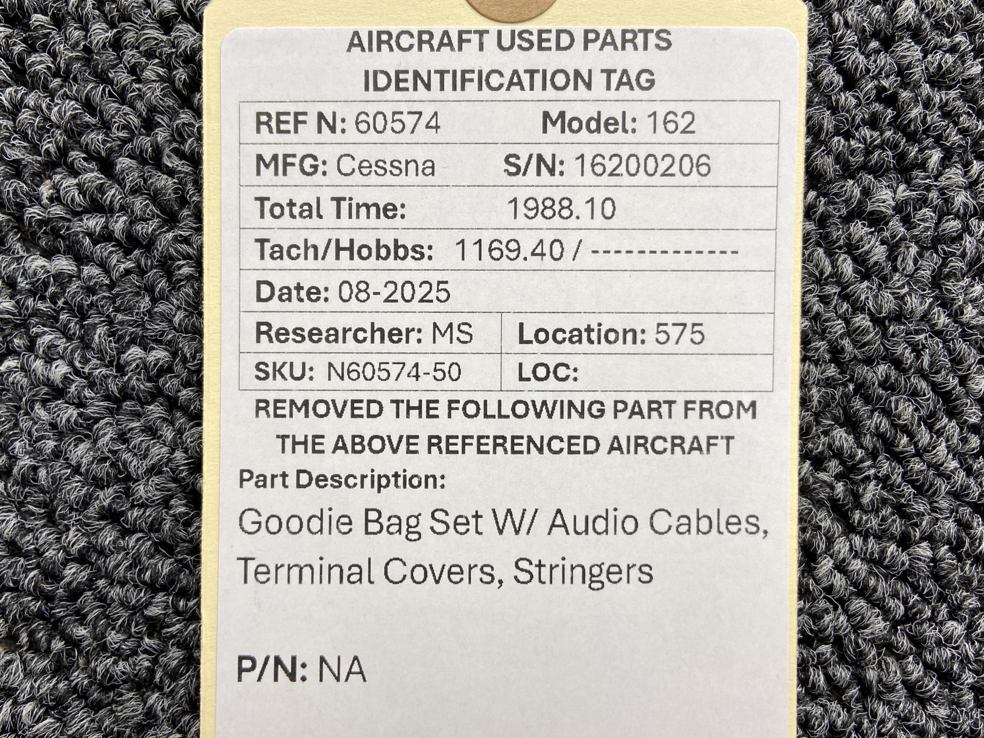 - Includes audio cables, floor panels and terminal covers for the Cessna 162