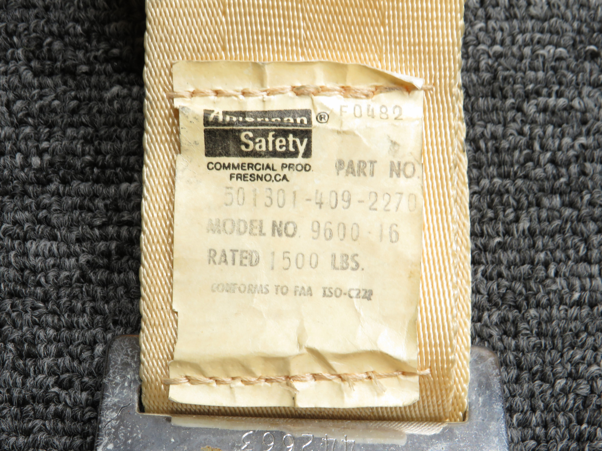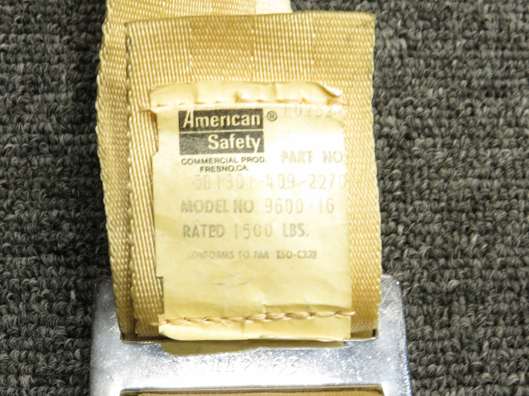 - Light Tan American Safety seat belts, Model: 9600-16 PN: 501301-409-2270