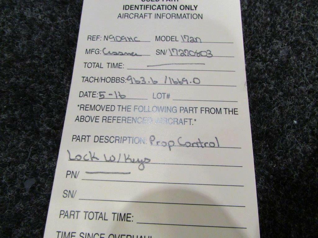 Cessna 172N Propeller Control Lock W/ Keys