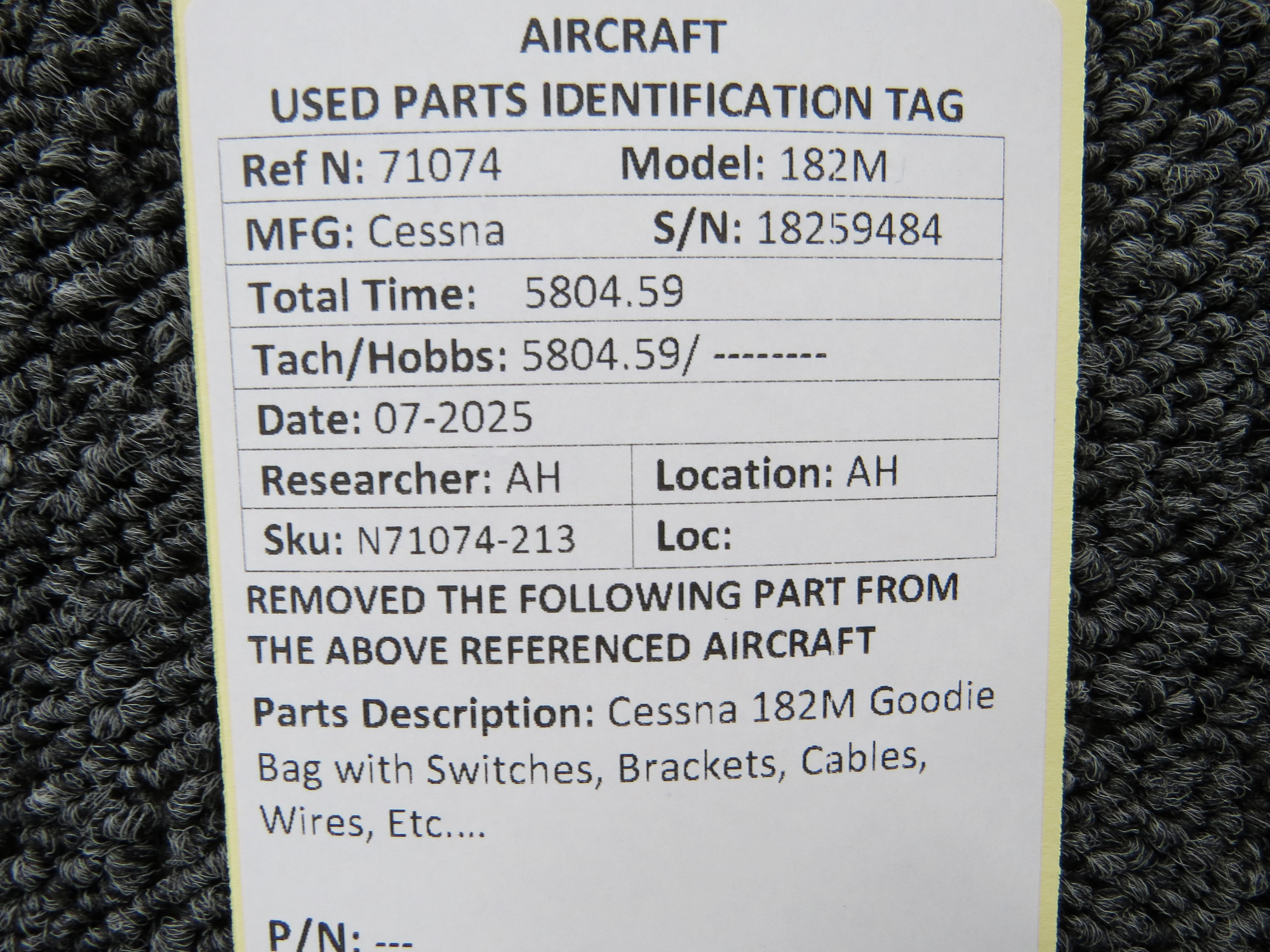 - Includes switches, brackets, cables, wires and more for the Cessna 182M