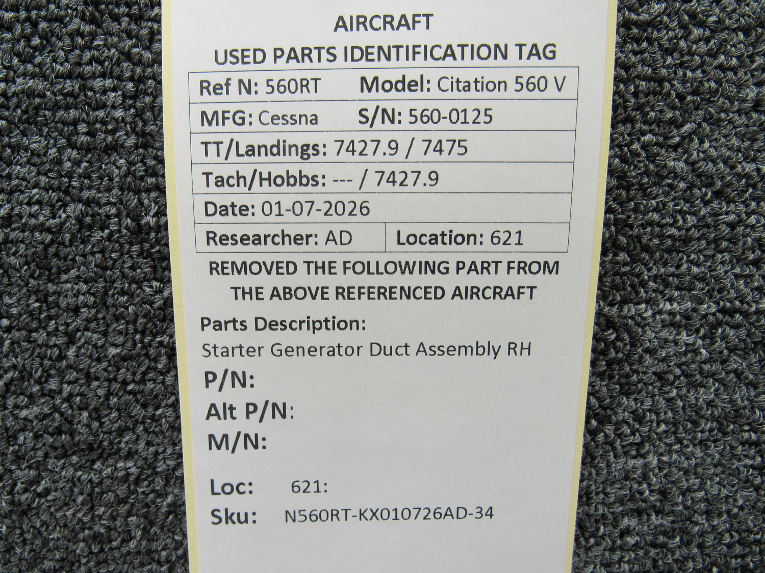 Every part is carefully inspected throughout our process and several times before it goes online. Most items are sold as-removed, just as they came off the aircraft. These parts are not functionally tested. What we do provide is clear photos, full traceability when available, pricing that reflects the as-removed condition, and a no-nonsense 90-day return window.