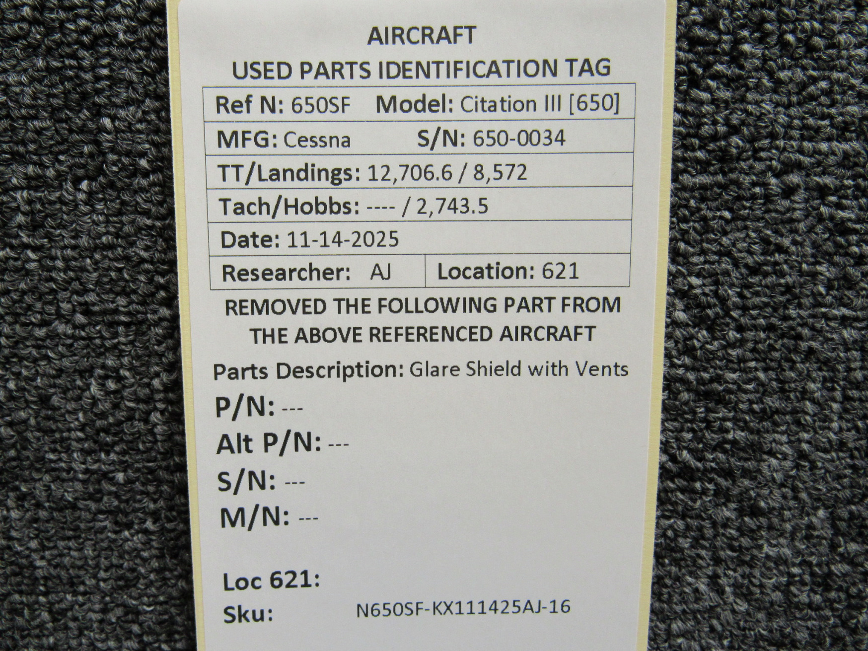 Unless specifically noted, most of our used airplane parts are sold in the condition they were removed, which means you should expect the usual signs of wear and tear.