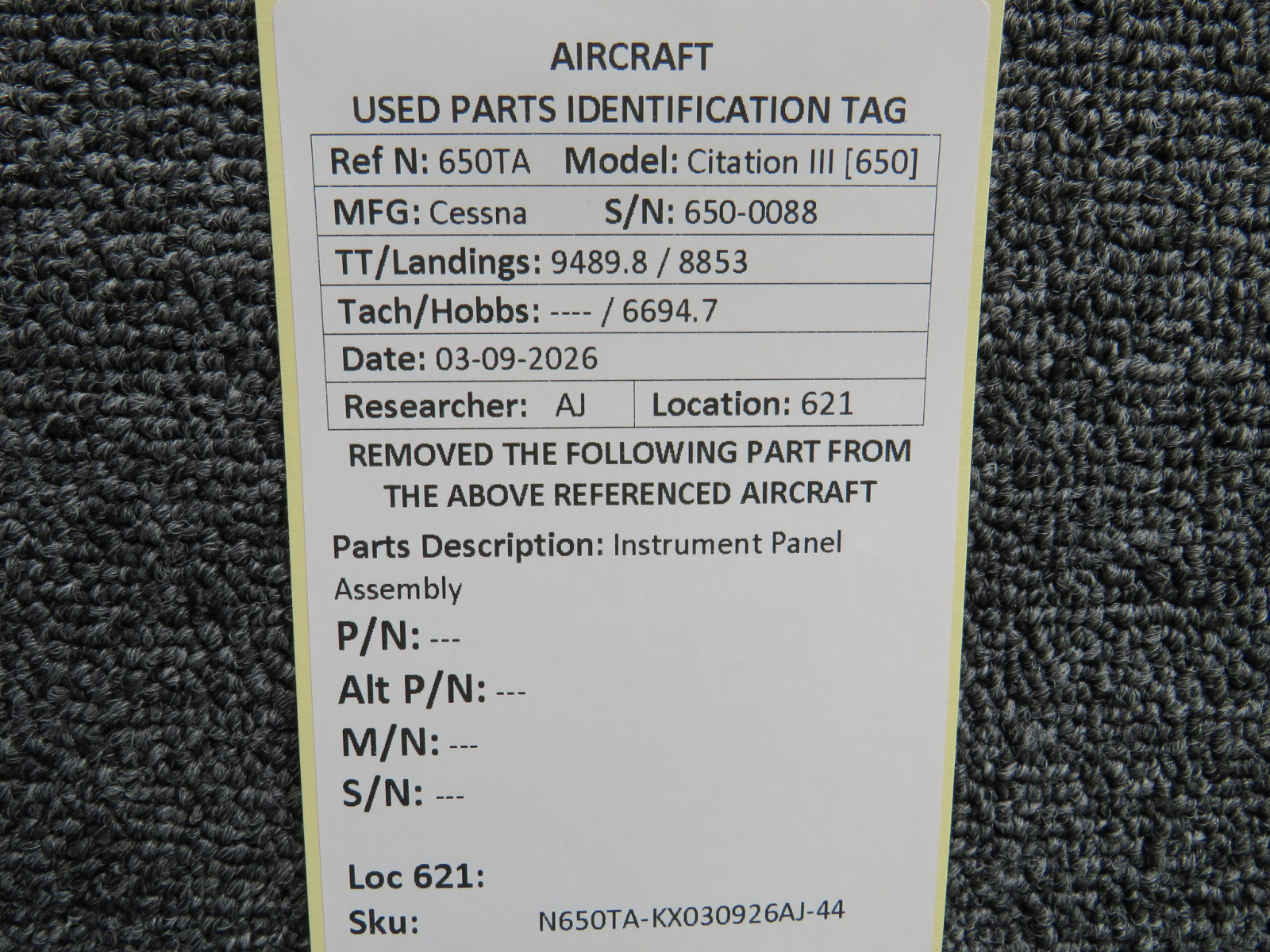 Every part is carefully inspected throughout our process and several times before it goes online. Most items are sold as-removed, just as they came off the aircraft. These parts are not functionally tested. What we do provide is clear photos, full traceability when available, pricing that reflects the as-removed condition, and a no-nonsense 90-day return window.