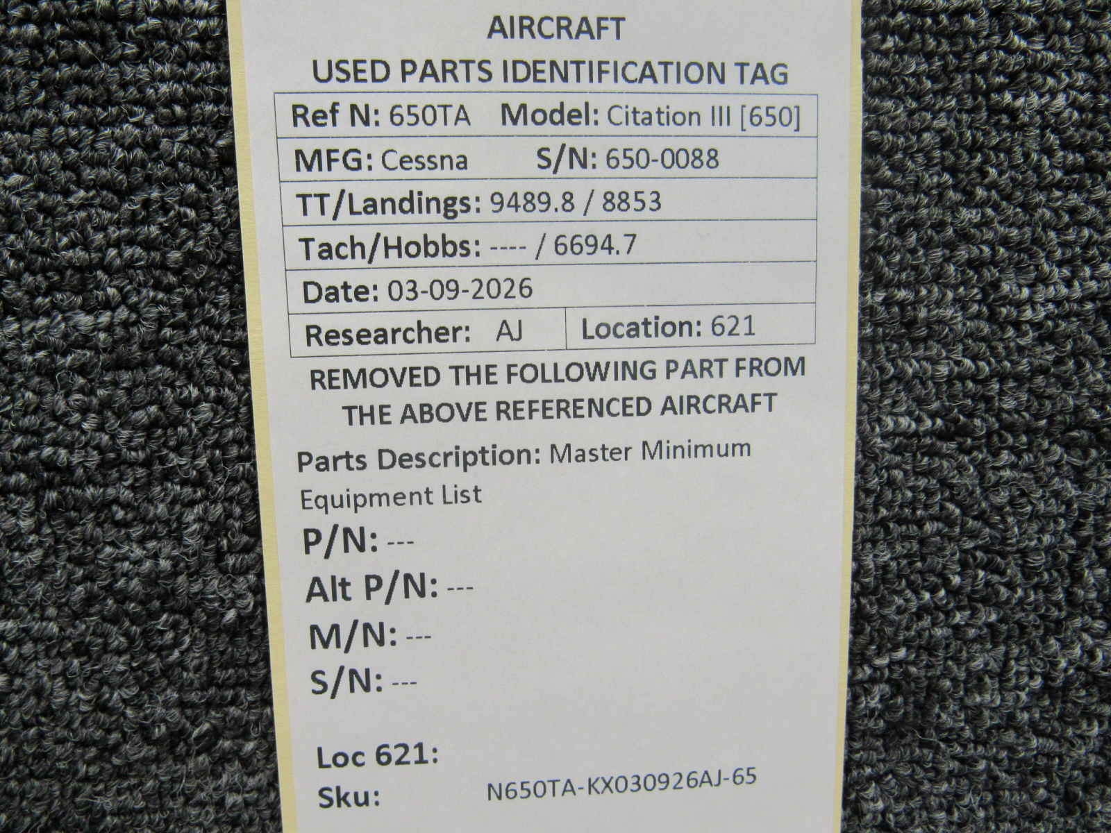 Every part is carefully inspected throughout our process and several times before it goes online. Most items are sold as-removed, just as they came off the aircraft. These parts are not functionally tested. What we do provide is clear photos, full traceability when available, pricing that reflects the as-removed condition, and a no-nonsense 90-day return window.