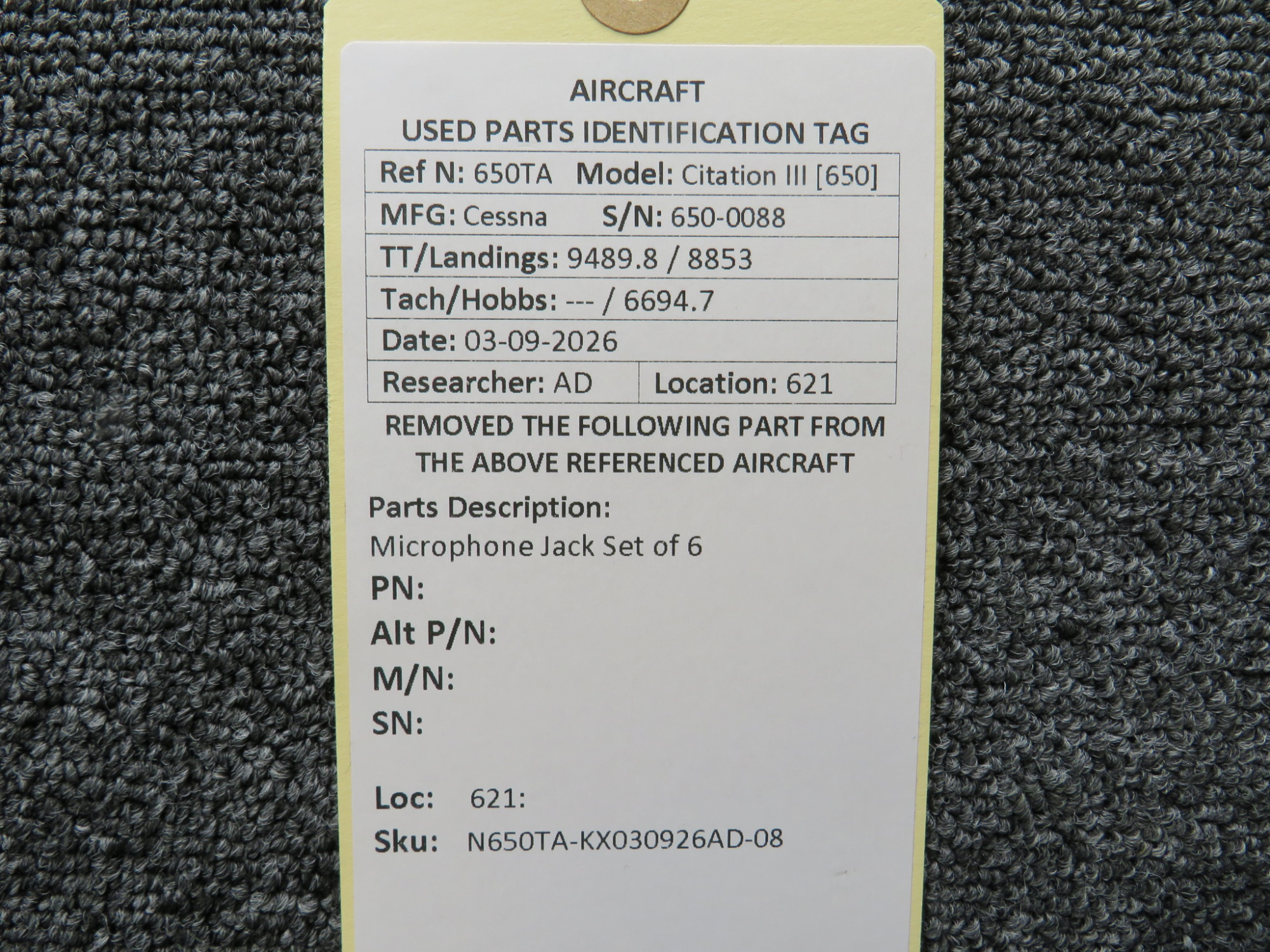 - Removed From Cessna Citation III 650