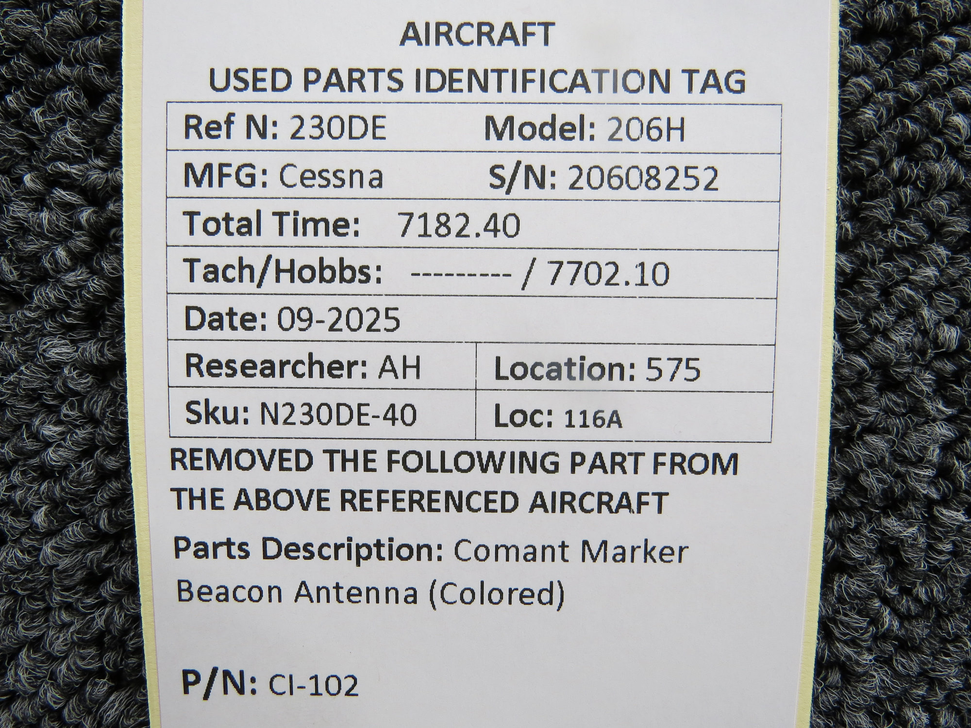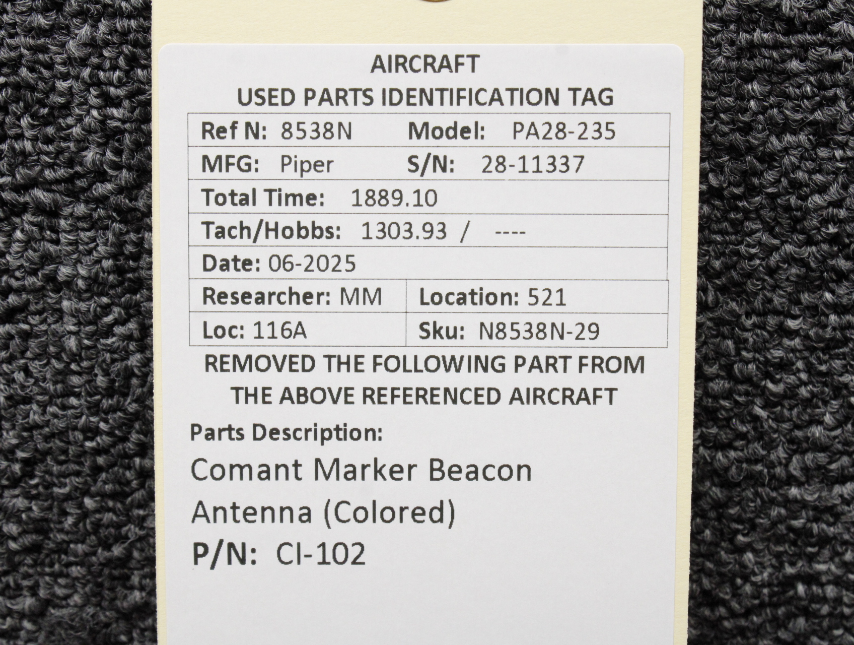 Unless specifically noted, most of our used airplane parts are sold in the condition they were removed, which means you should expect the usual signs of wear and tear.