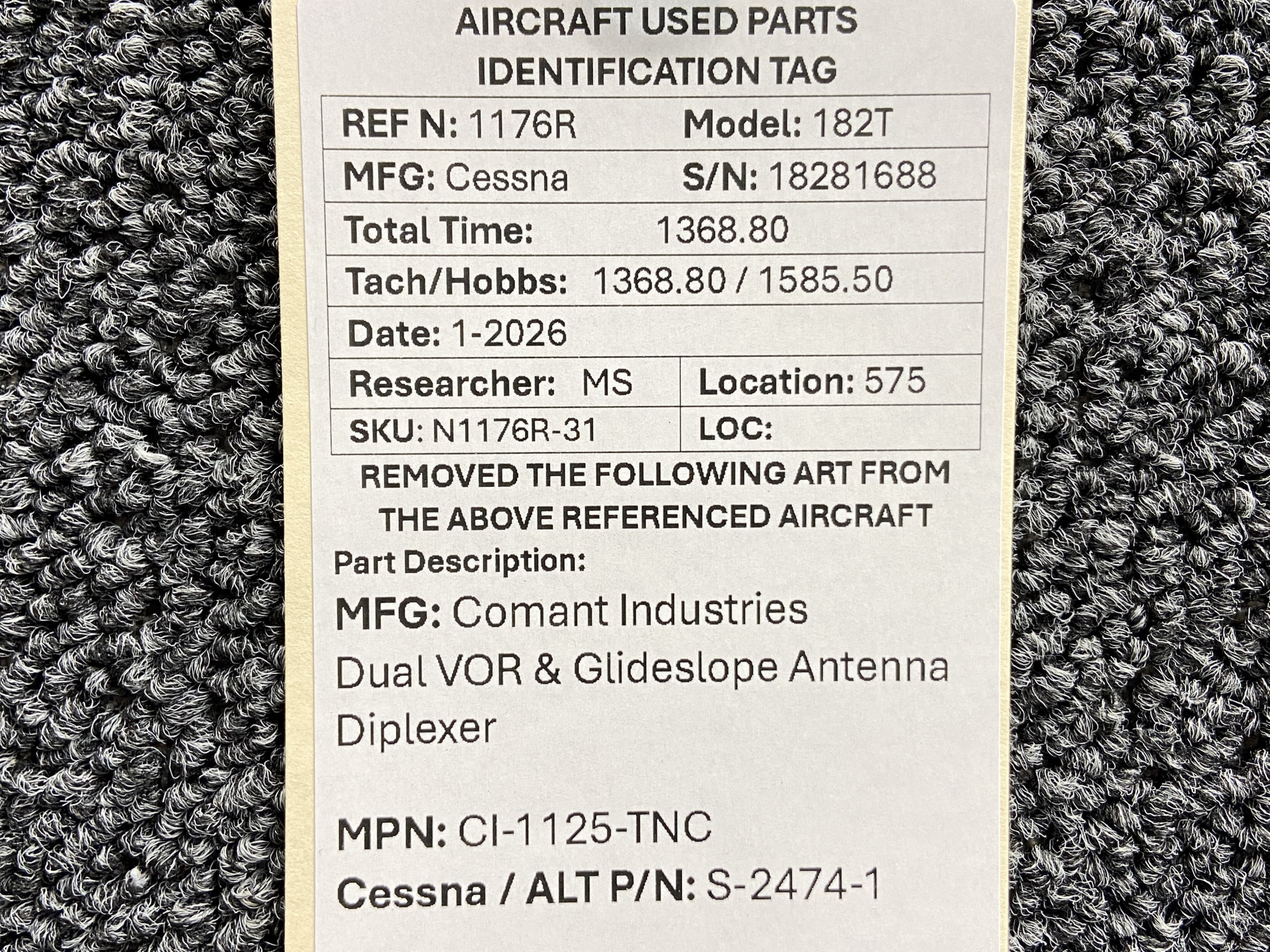 Unless specifically noted, most of our used airplane parts are sold in the condition they were removed, which means you should expect the usual signs of wear and tear.