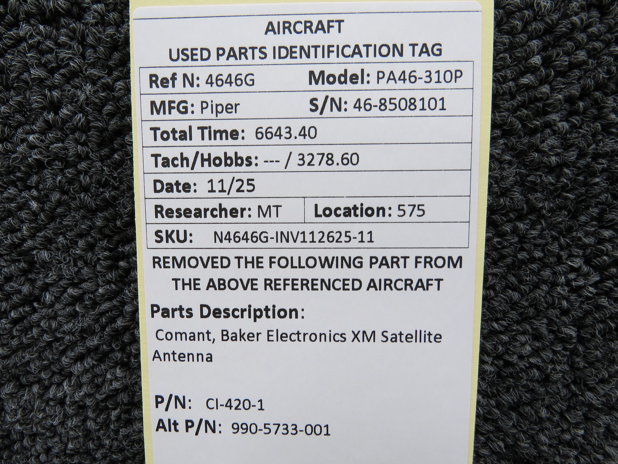 Unless specifically noted, most of our used airplane parts are sold in the condition they were removed, which means you should expect the usual signs of wear and tear.
