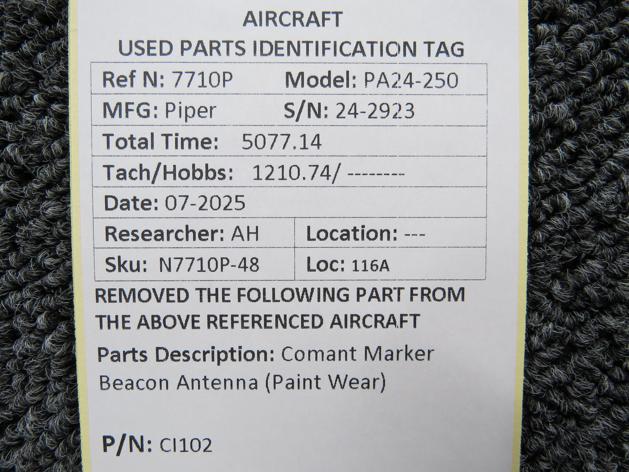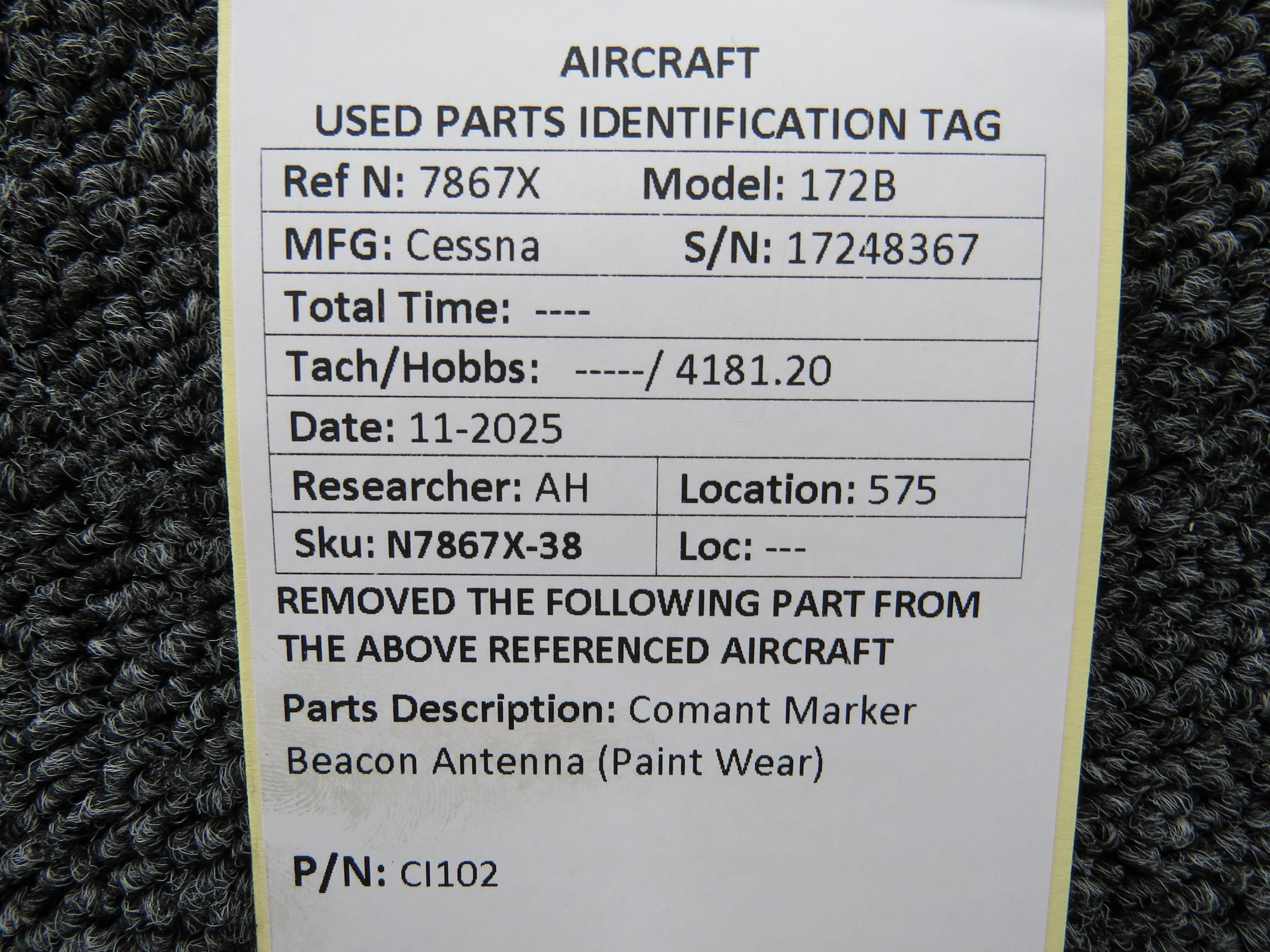 Unless specifically noted, most of our used airplane parts are sold in the condition they were removed, which means you should expect the usual signs of wear and tear.