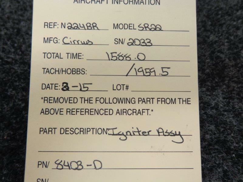 Cirrus SR22 Igniter Assy P/N 8403-D