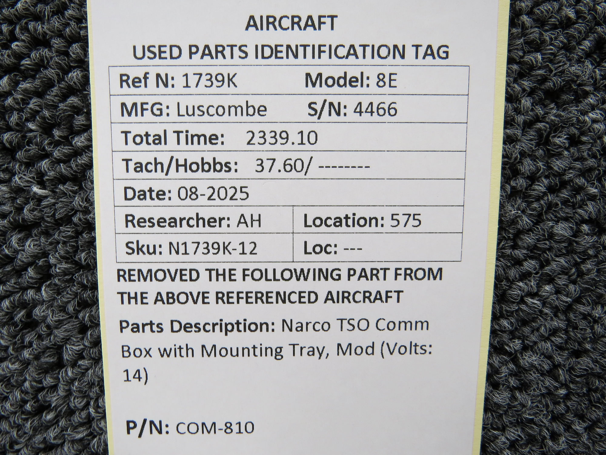 Unless specifically noted, most of our used airplane parts are sold in the condition they were removed, which means you should expect the usual signs of wear and tear.
