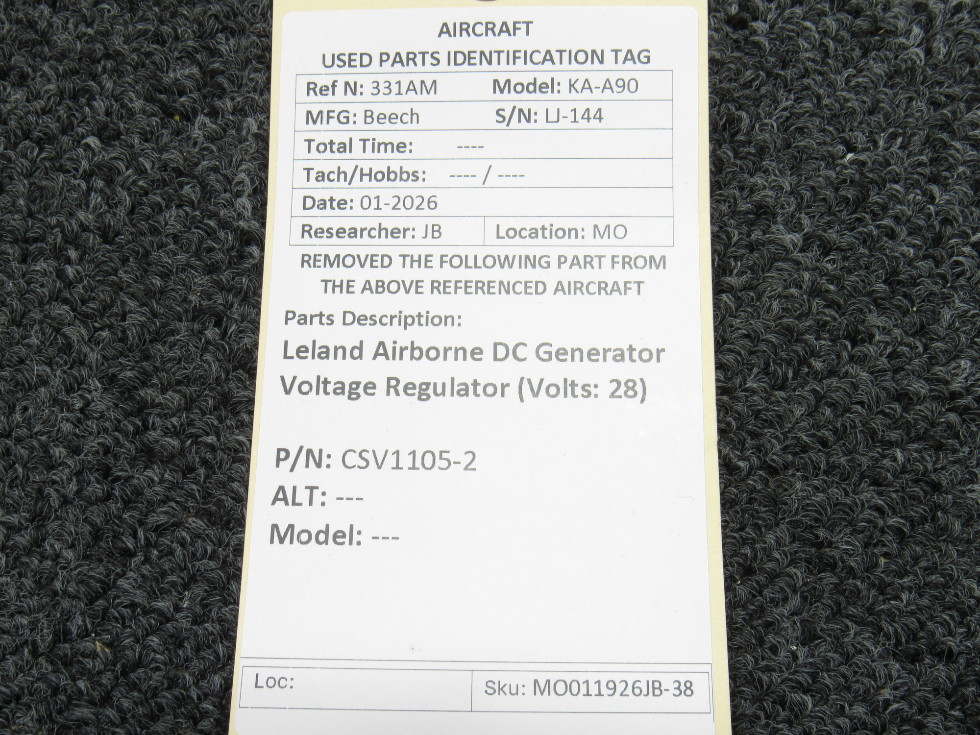 Unless specifically noted, most of our used airplane parts are sold in the condition they were removed, which means you should expect the usual signs of wear and tear.