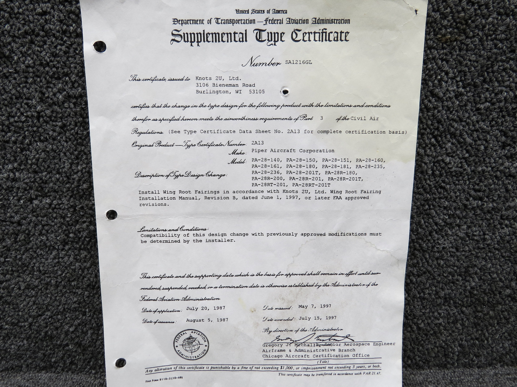- STC Number: SA1216GL