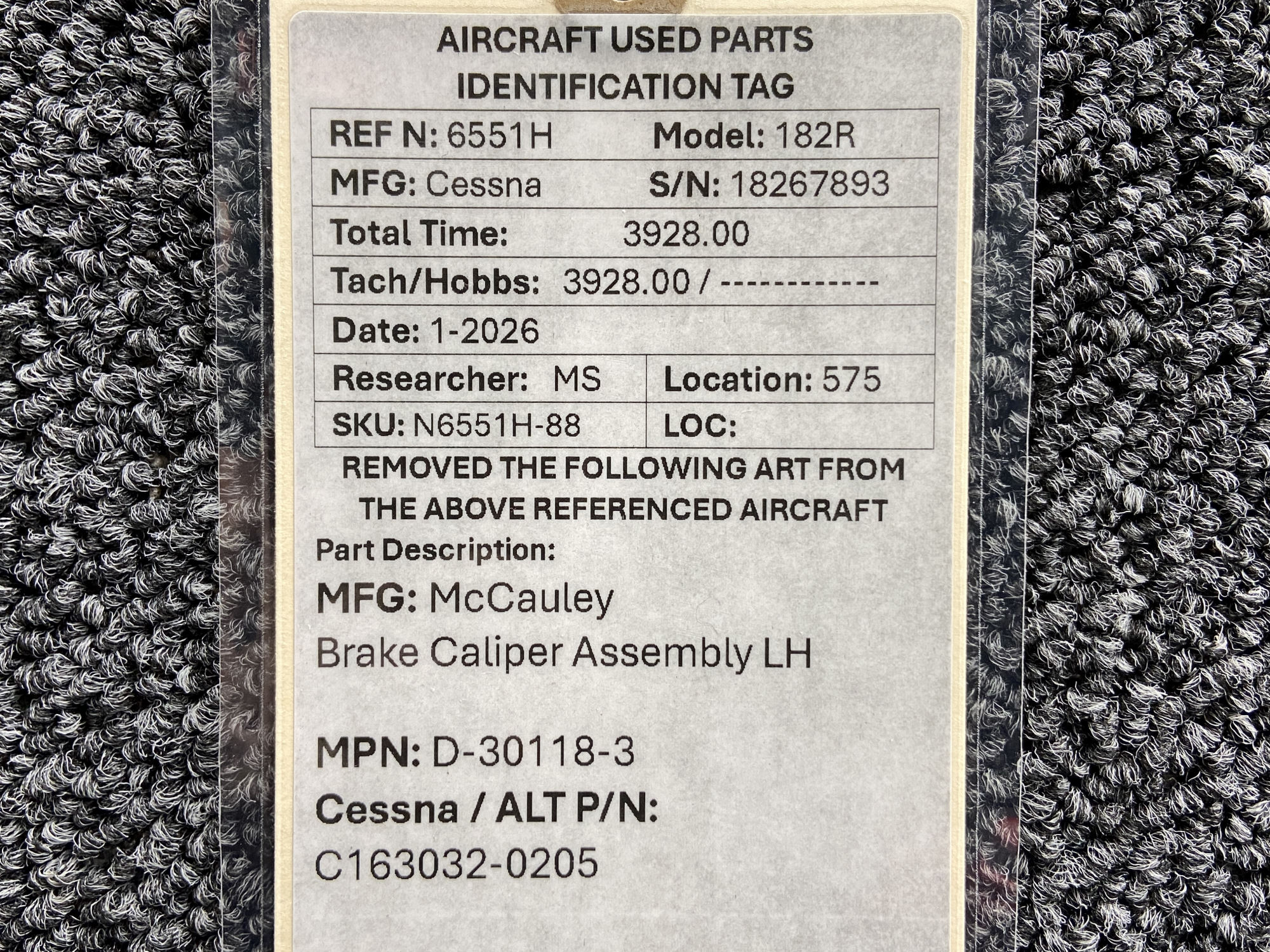 Unless specifically noted, most of our used airplane parts are sold in the condition they were removed, which means you should expect the usual signs of wear and tear.