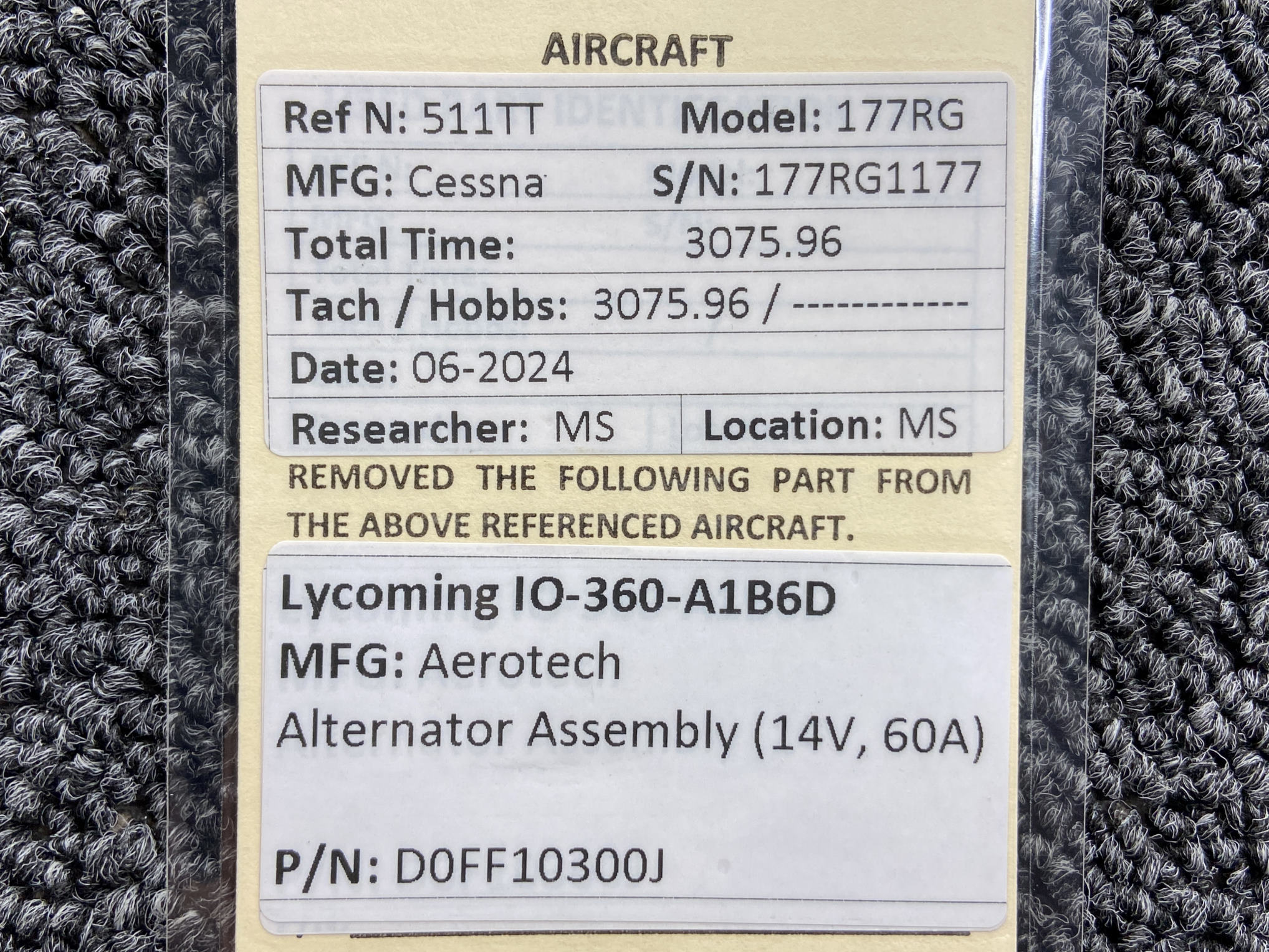 - Removed From: Lycoming IO-360-A1B6D