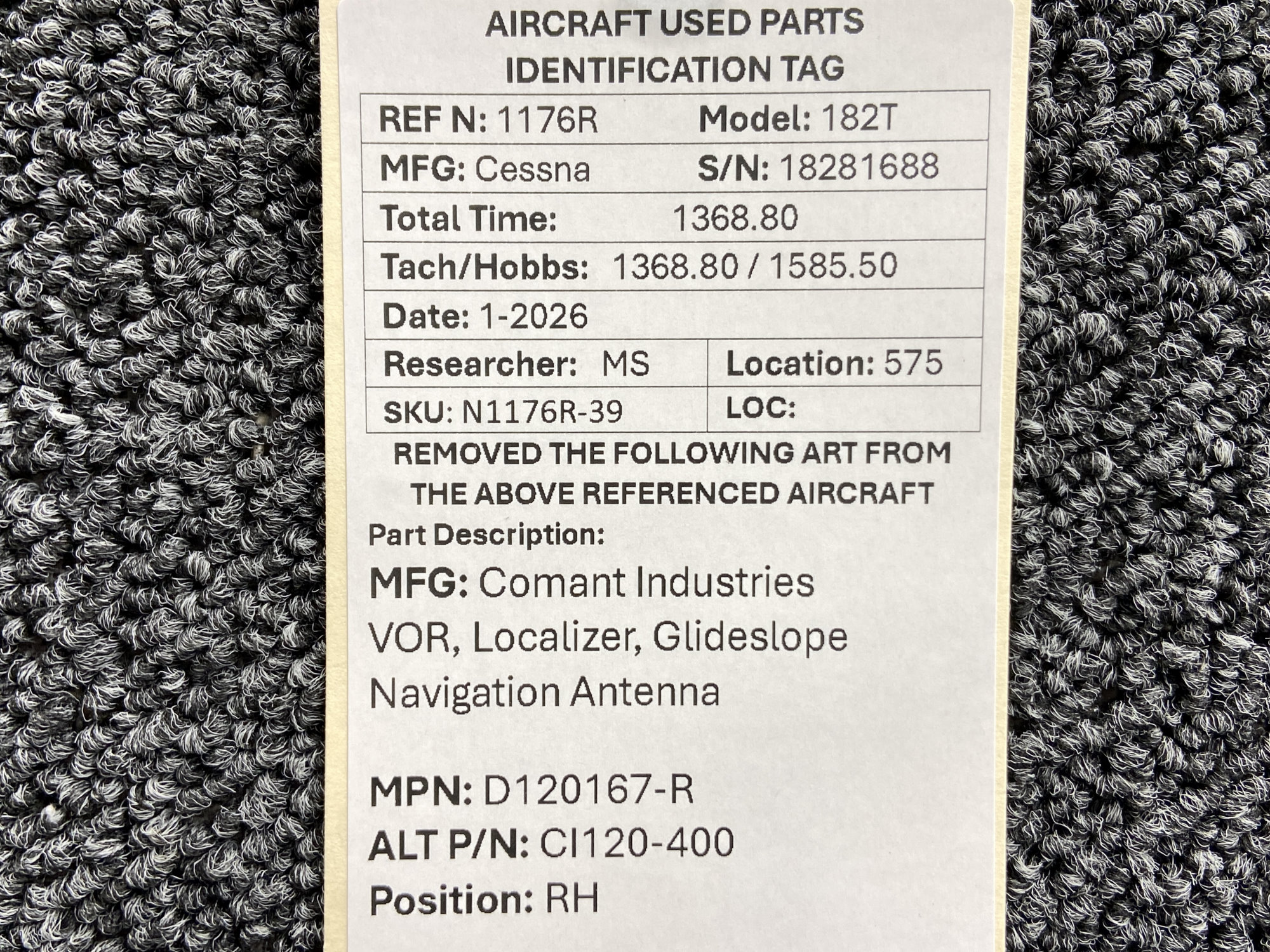 Unless specifically noted, most of our used airplane parts are sold in the condition they were removed, which means you should expect the usual signs of wear and tear.