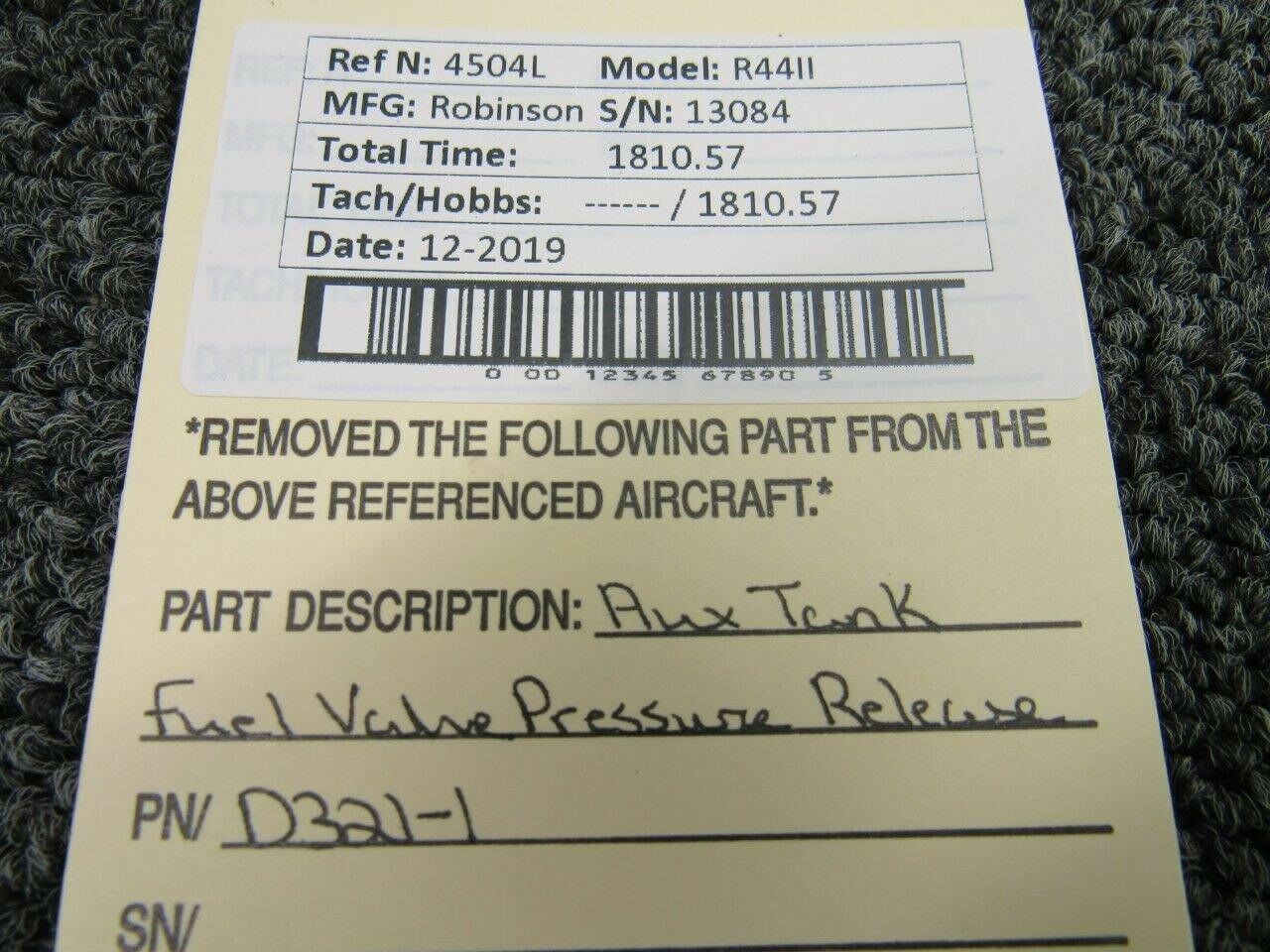 D321-1 Robinson R44II Aux Tank Fuel Pressure Release Valve