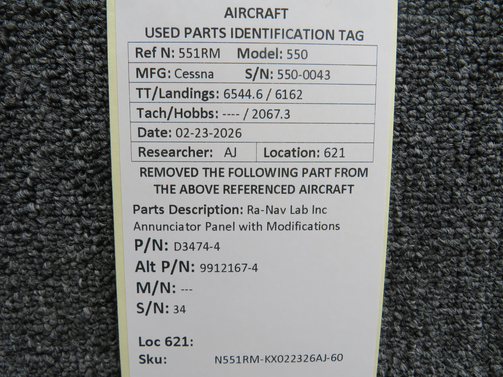 Unless specifically noted, most of our used airplane parts are sold in the condition they were removed, which means you should expect the usual signs of wear and tear.