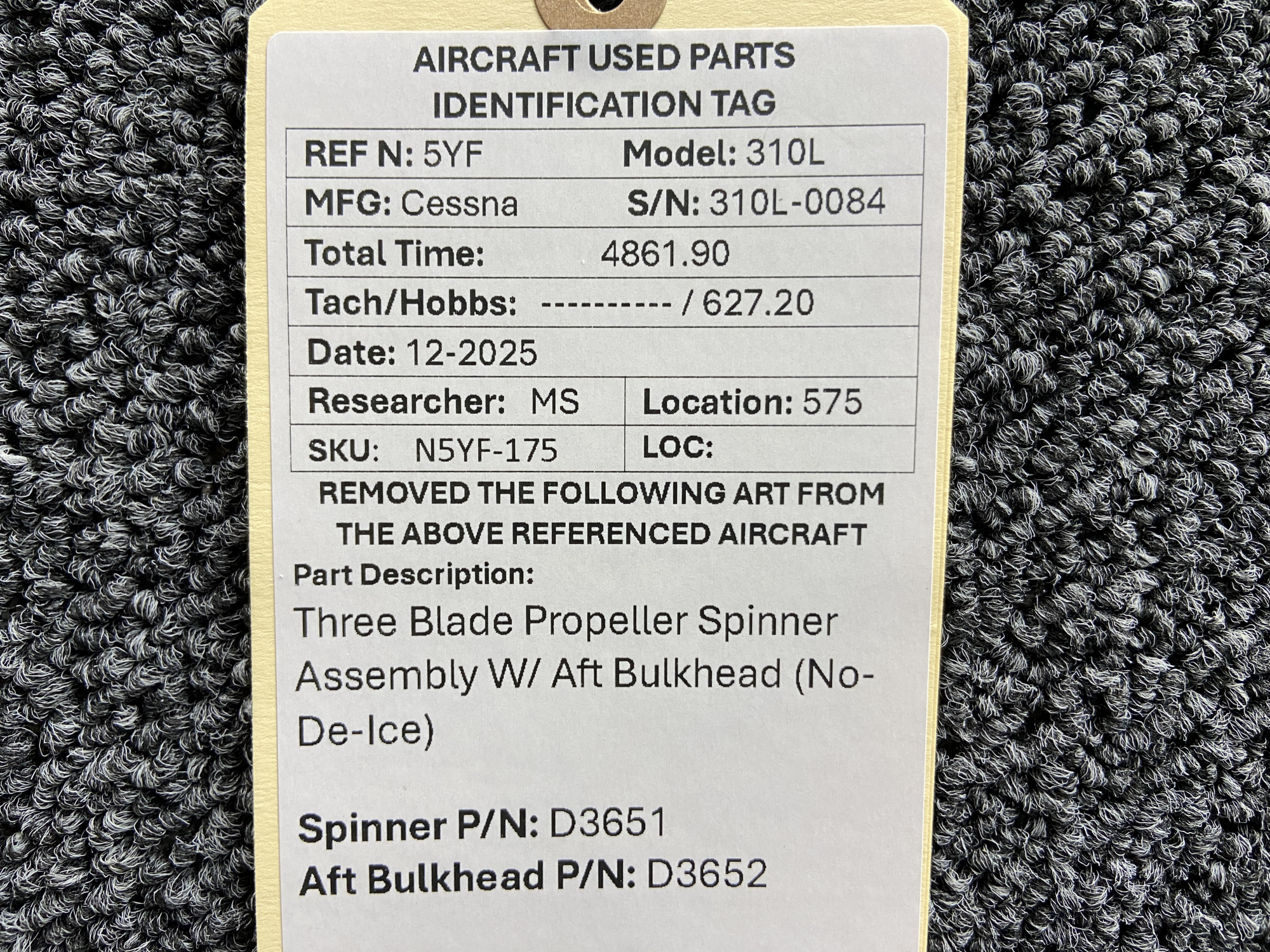 - This is a standard spinner and bulkhead (no de-ice)