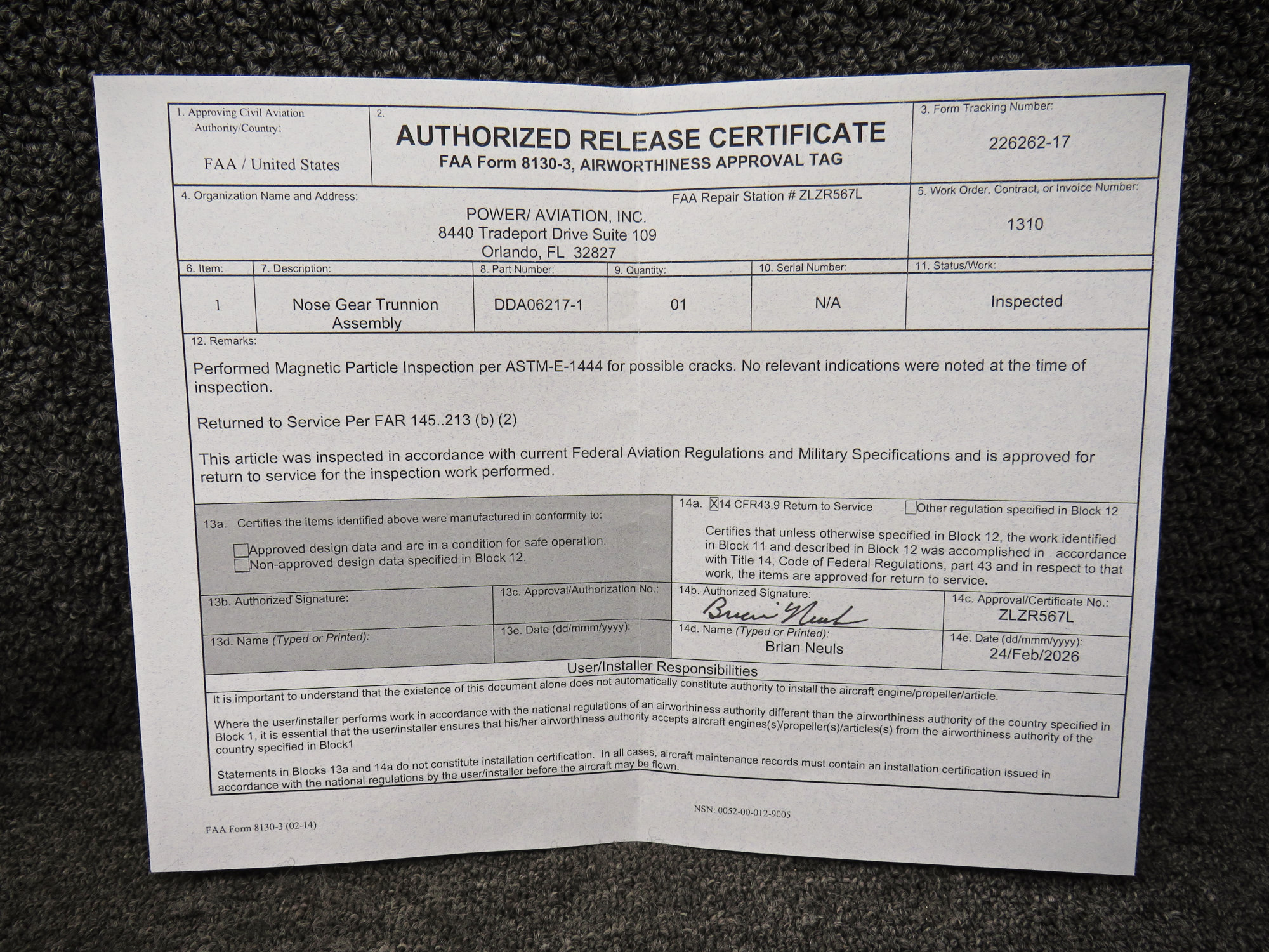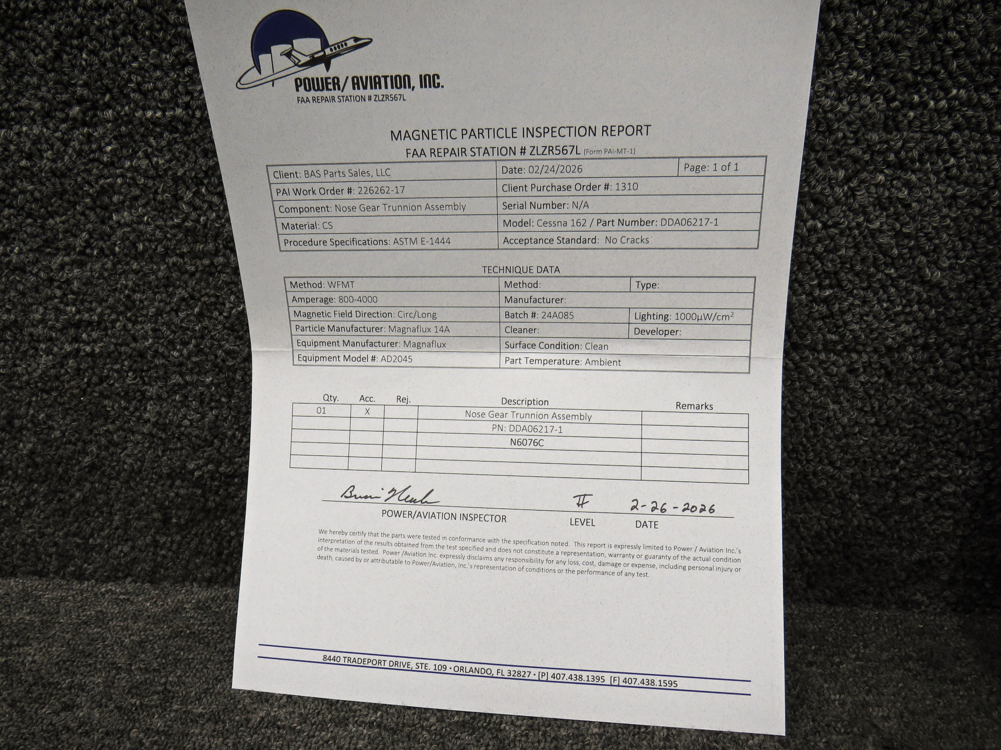 - Inspected By: Power/Aviation Inc on 2-26-2026