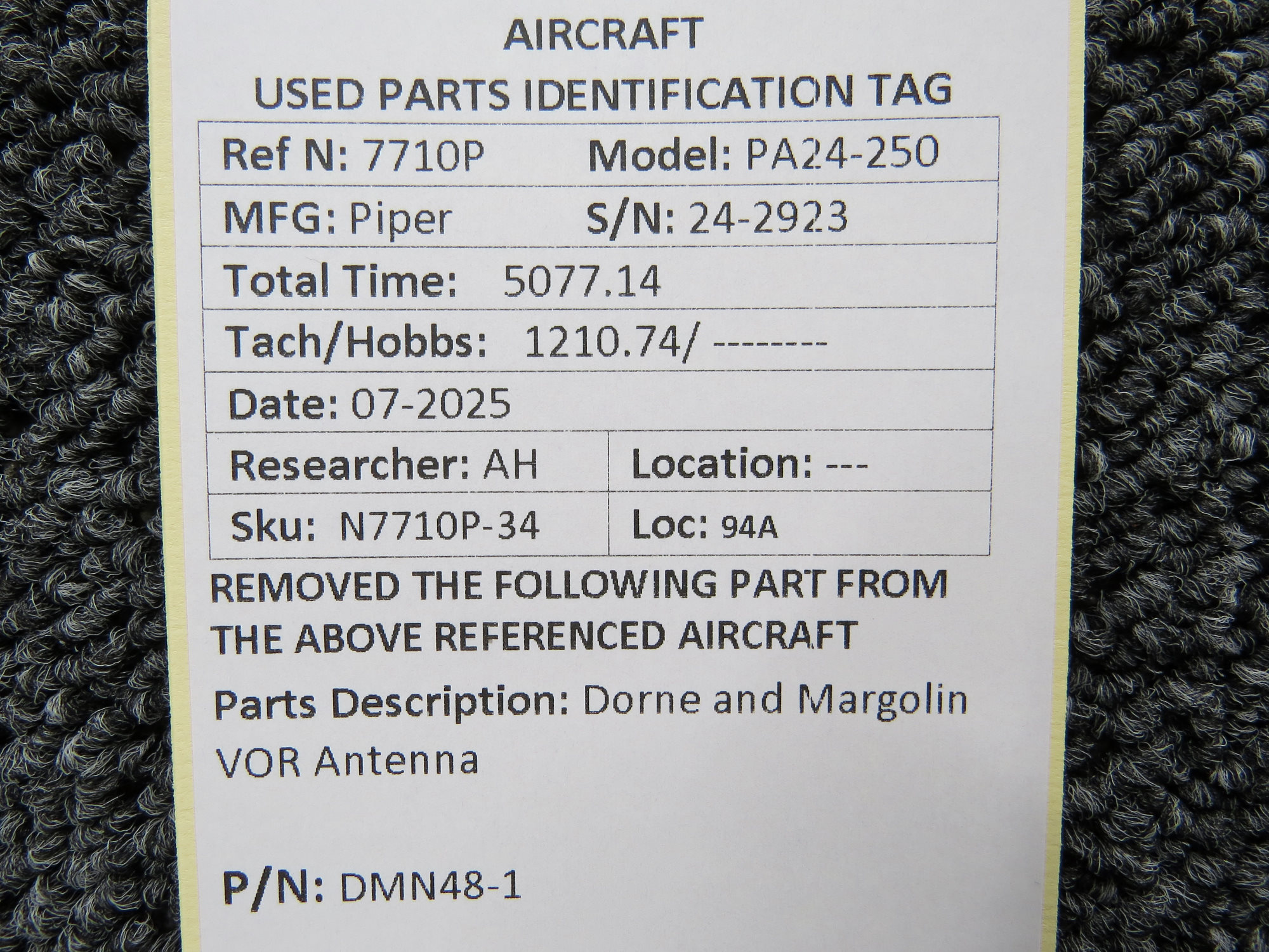 - N7710P-34KW-V: data tag is painted over with pink paint
