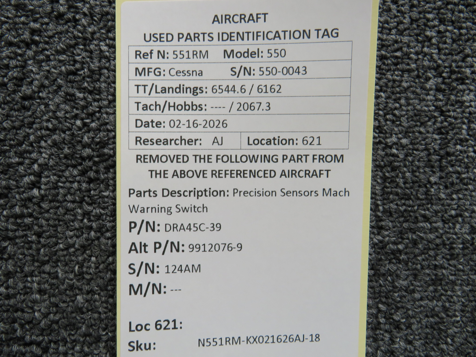 Unless specifically noted, most of our used airplane parts are sold in the condition they were removed, which means you should expect the usual signs of wear and tear.