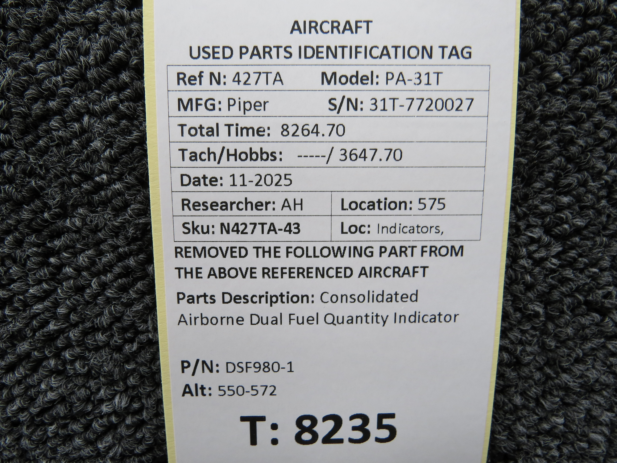 Unless specifically noted, most of our used airplane parts are sold in the condition they were removed, which means you should expect the usual signs of wear and tear.
