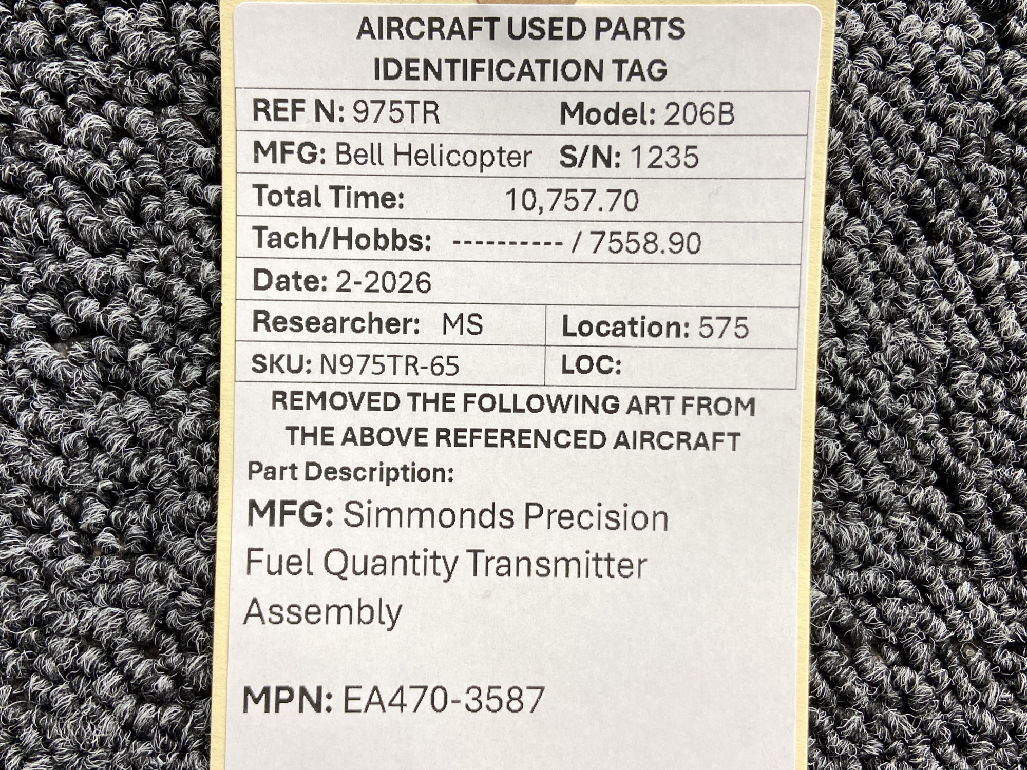 Every part is carefully inspected throughout our process and several times before it goes online. Most items are sold as-removed, just as they came off the aircraft. These parts are not functionally tested. What we do provide is clear photos, full traceability when available, pricing that reflects the as-removed condition, and a no-nonsense 90-day return window.