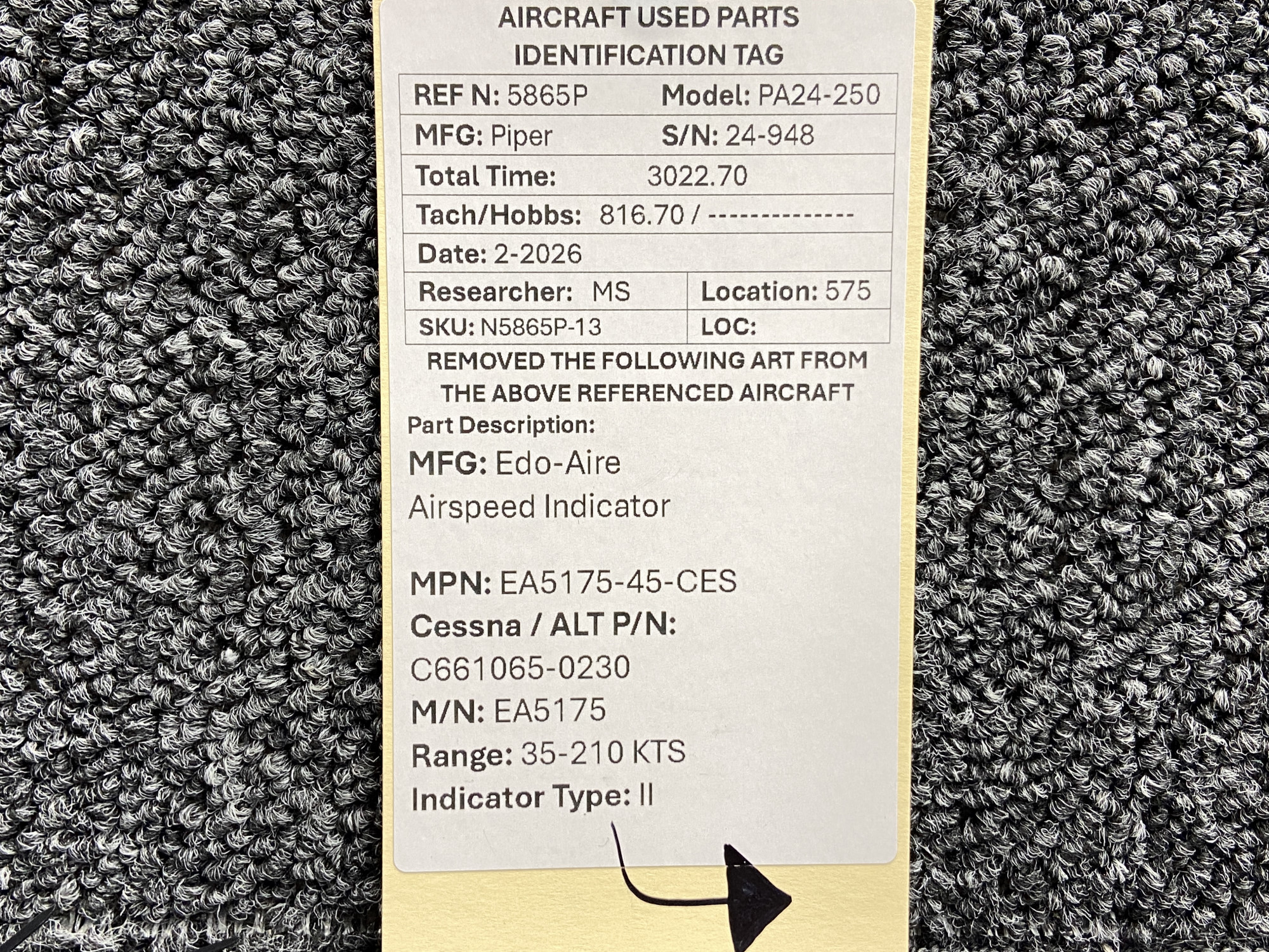 Unless specifically noted, most of our used airplane parts are sold in the condition they were removed, which means you should expect the usual signs of wear and tear.
