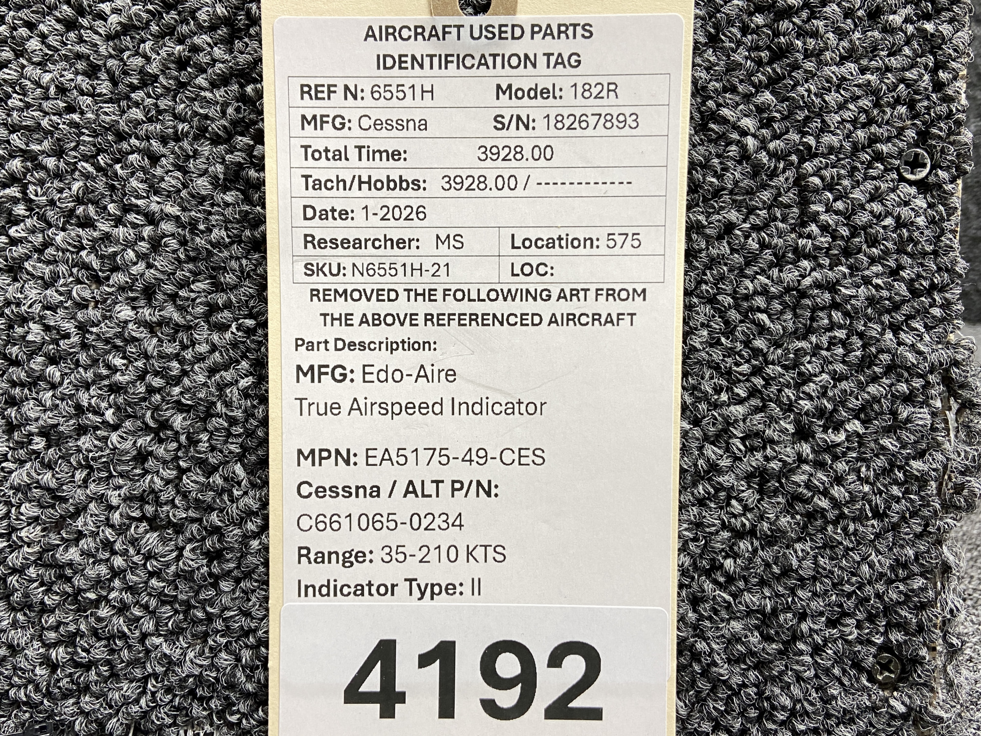 Unless specifically noted, most of our used airplane parts are sold in the condition they were removed, which means you should expect the usual signs of wear and tear.