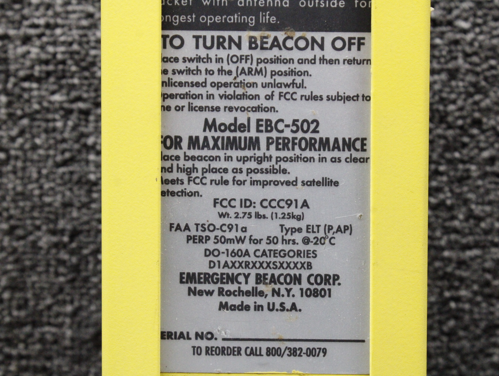 - ELT Model Number: EBC-502