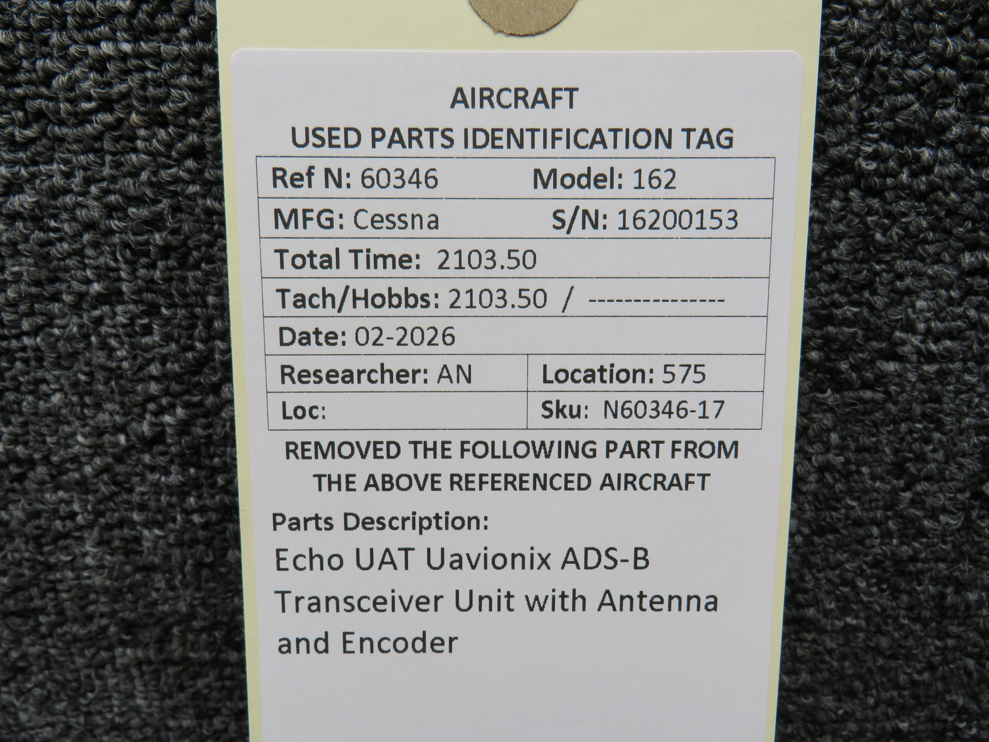 Every part is carefully inspected throughout our process and several times before it goes online. Most items are sold as-removed, just as they came off the aircraft. These parts are not functionally tested. What we do provide is clear photos, full traceability when available, pricing that reflects the as-removed condition, and a no-nonsense 90-day return window.