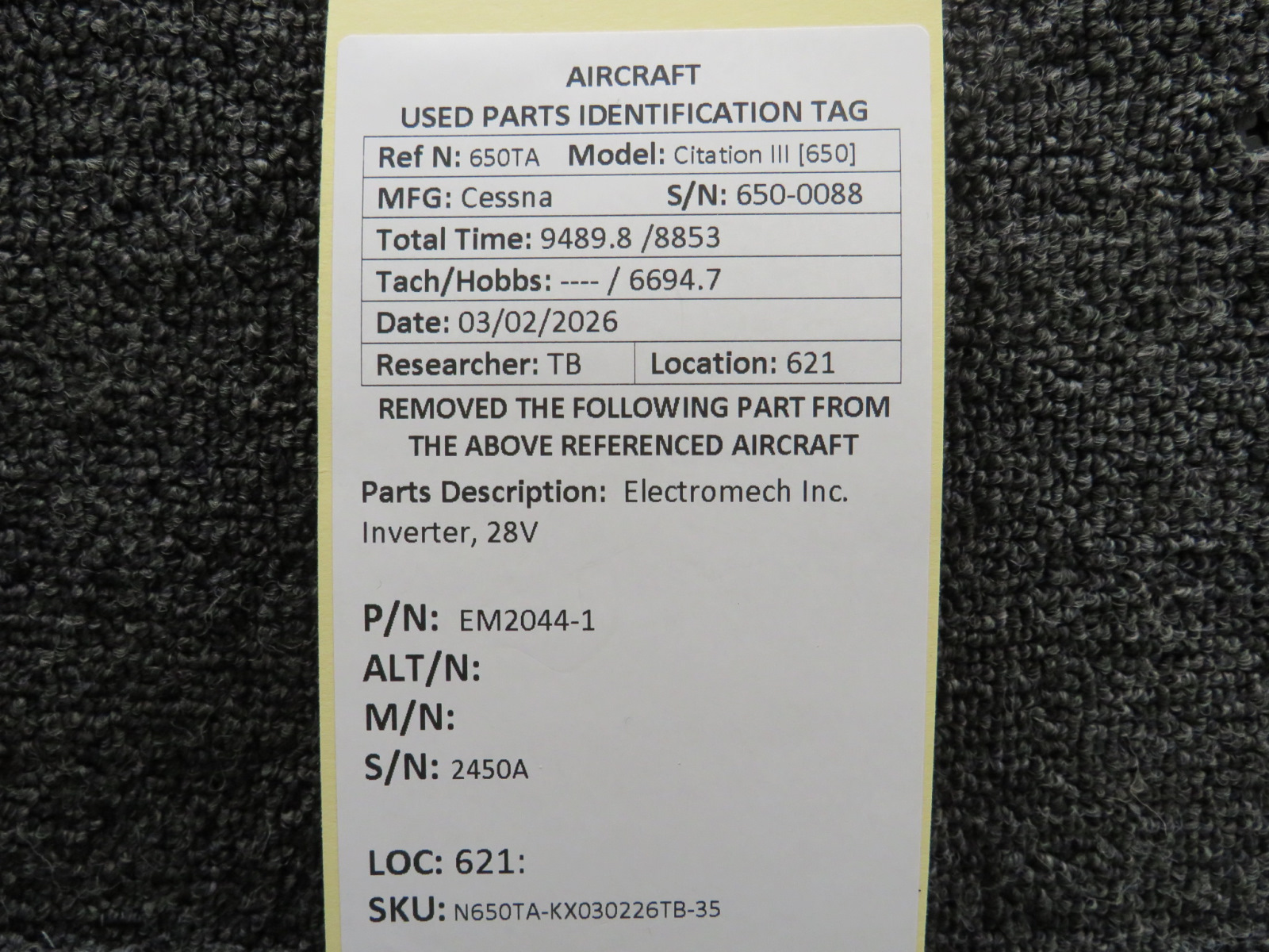 Every part is carefully inspected throughout our process and several times before it goes online. Most items are sold as-removed, just as they came off the aircraft. These parts are not functionally tested. What we do provide is clear photos, full traceability when available, pricing that reflects the as-removed condition, and a no-nonsense 90-day return window.