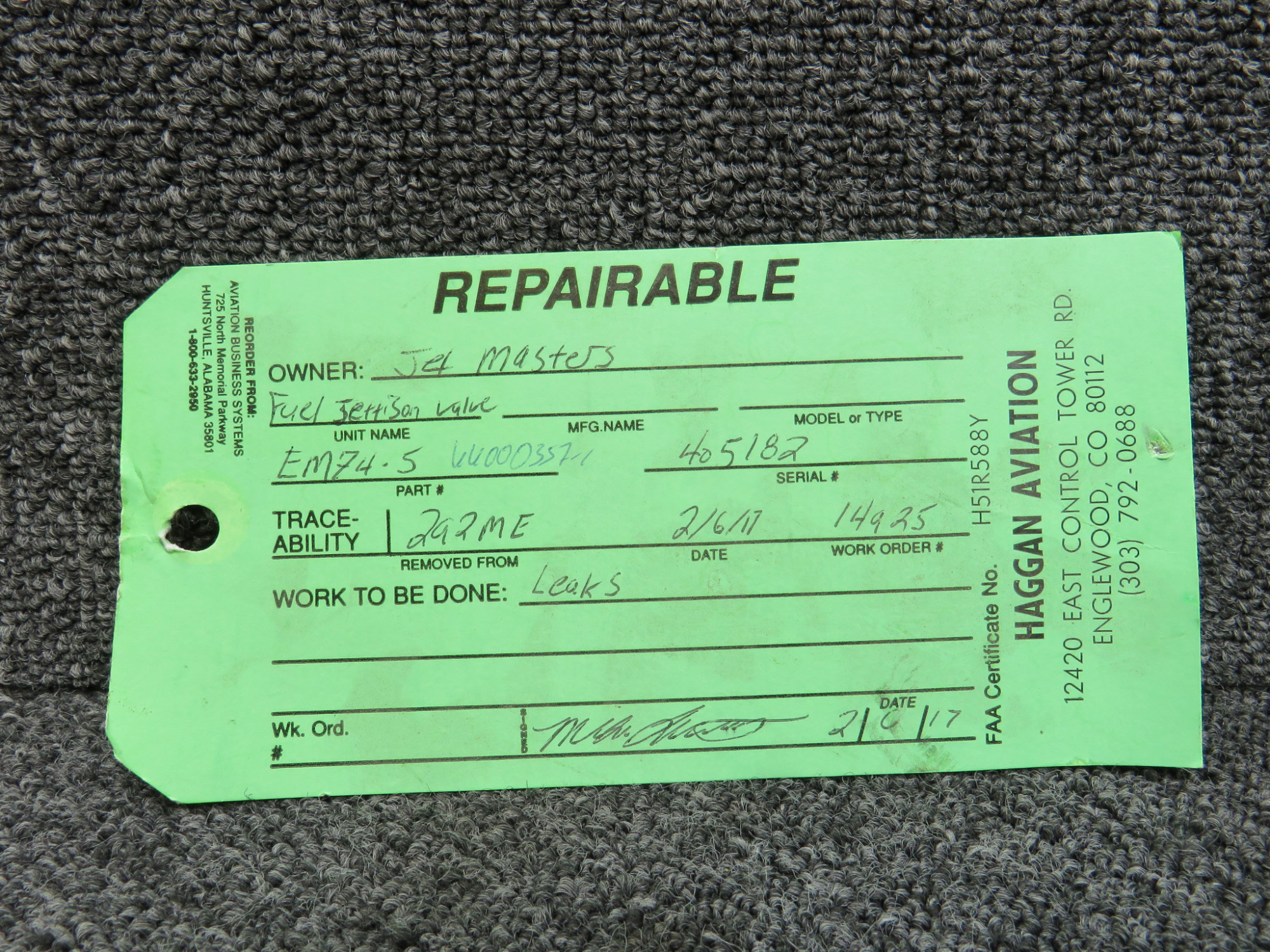 - Green Repairable Tag