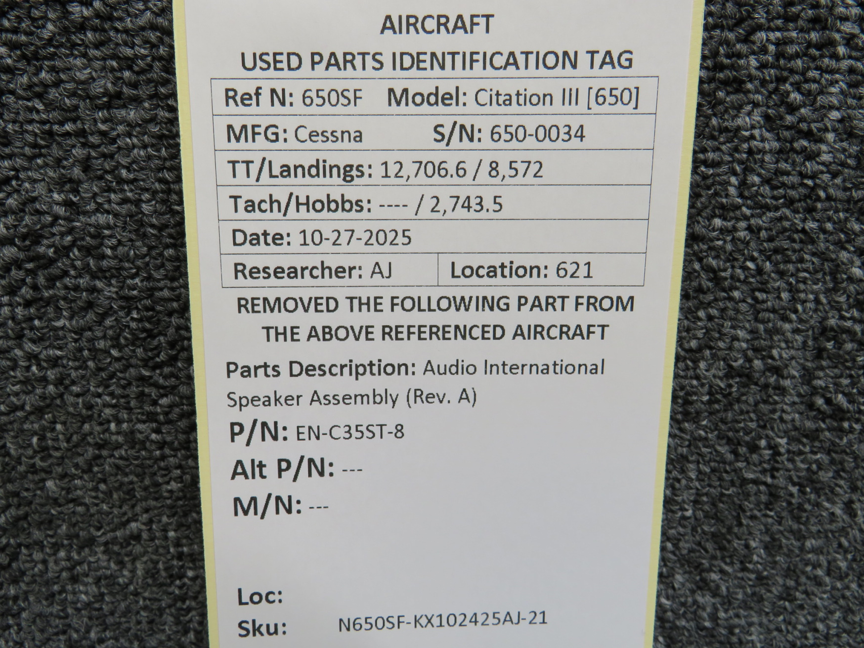 Unless specifically noted, most of our used airplane parts are sold in the condition they were removed, which means you should expect the usual signs of wear and tear.