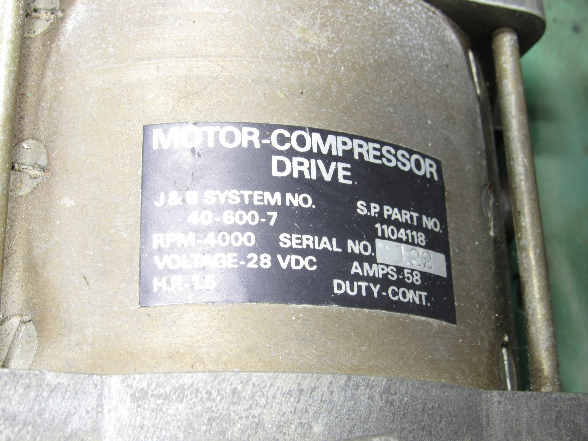 - Part Number: J & B Systems Compressor Motor: 40-600-7