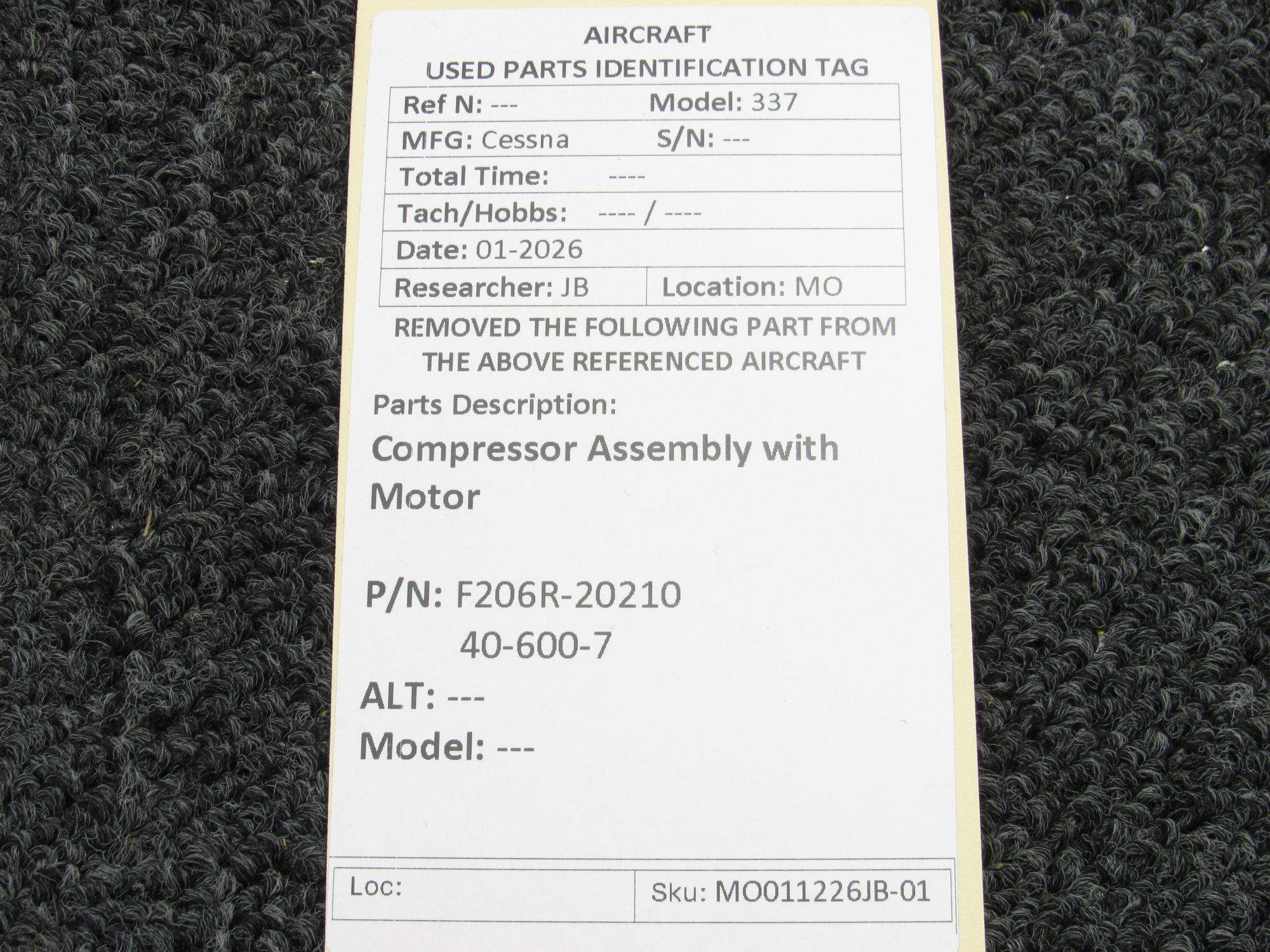 Unless specifically noted, most of our used airplane parts are sold in the condition they were removed, which means you should expect the usual signs of wear and tear.