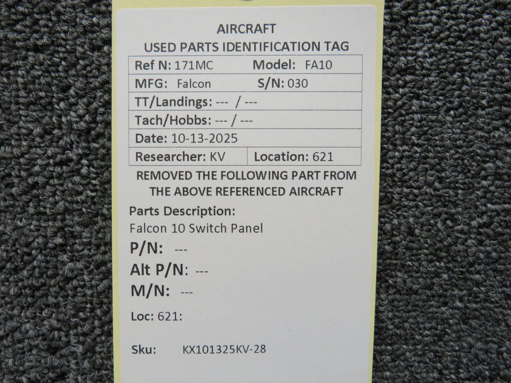 Every part is carefully inspected throughout our process and several times before it goes online. Most items are sold as-removed, just as they came off the aircraft. These parts are not functionally tested. What we do provide is clear photos, full traceability when available, pricing that reflects the as-removed condition, and a no-nonsense 90-day return window.
