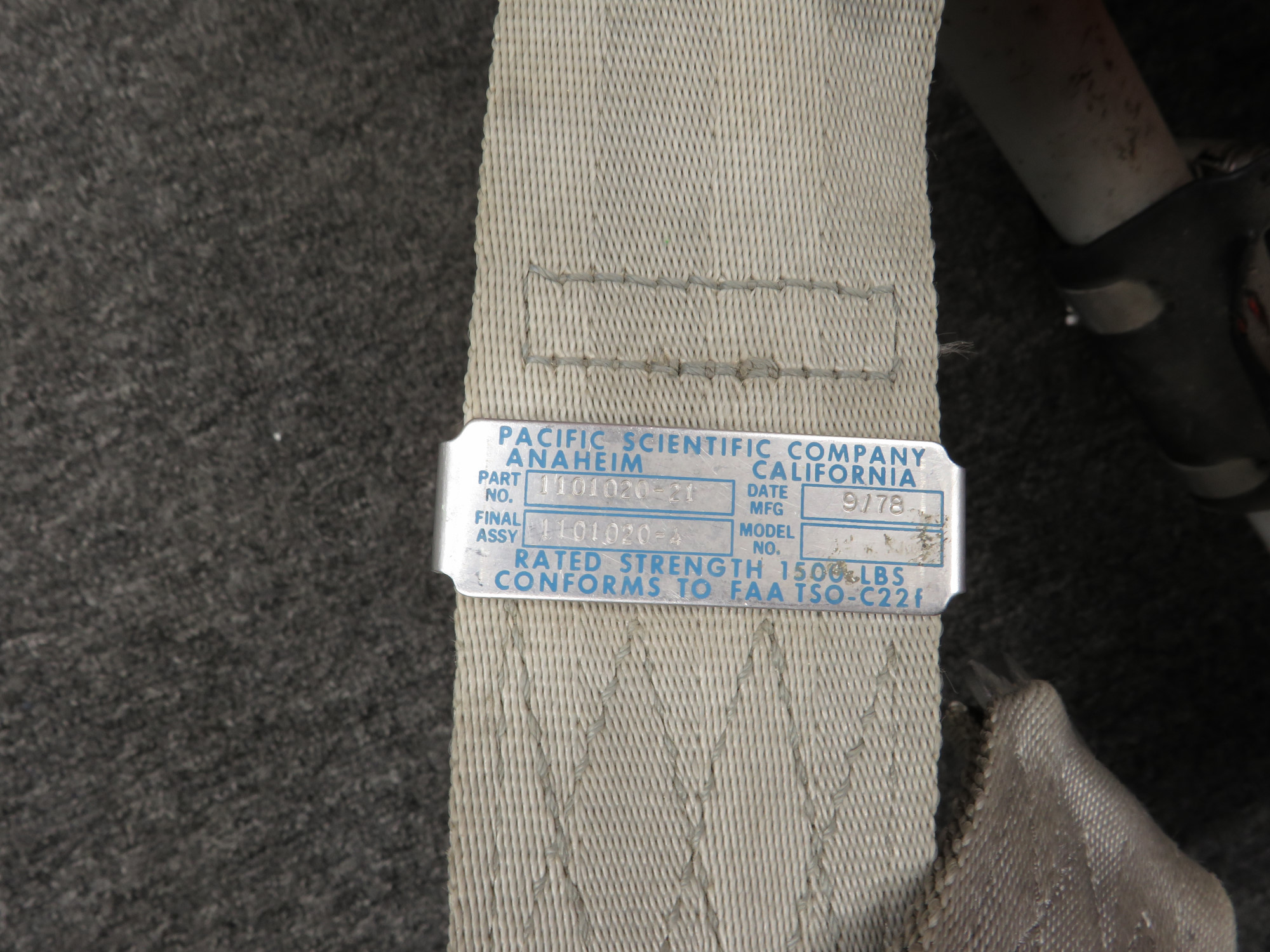 - Pacific seat belts assembly PN: 1101020-21