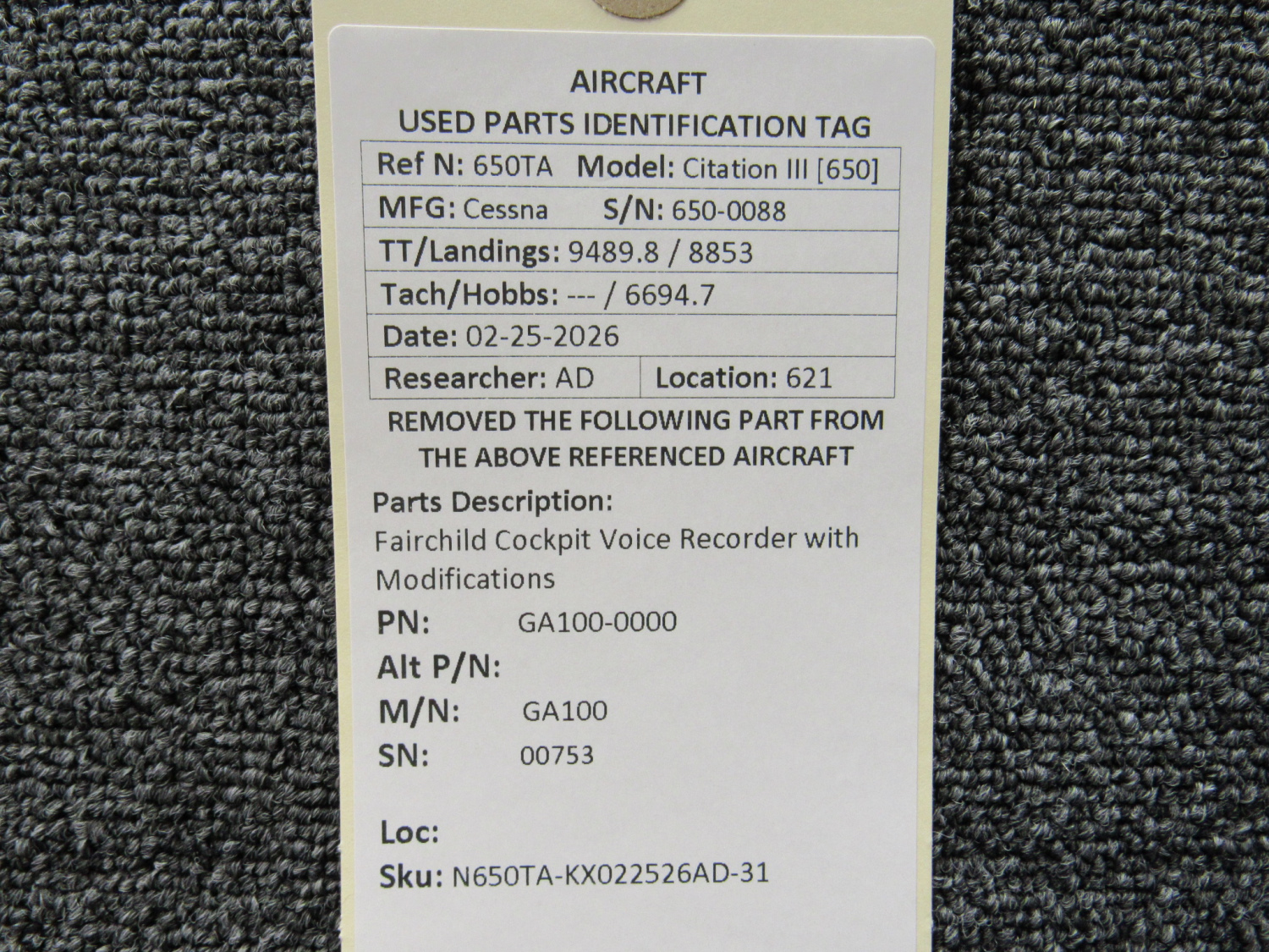 Unless specifically noted, most of our used airplane parts are sold in the condition they were removed, which means you should expect the usual signs of wear and tear.