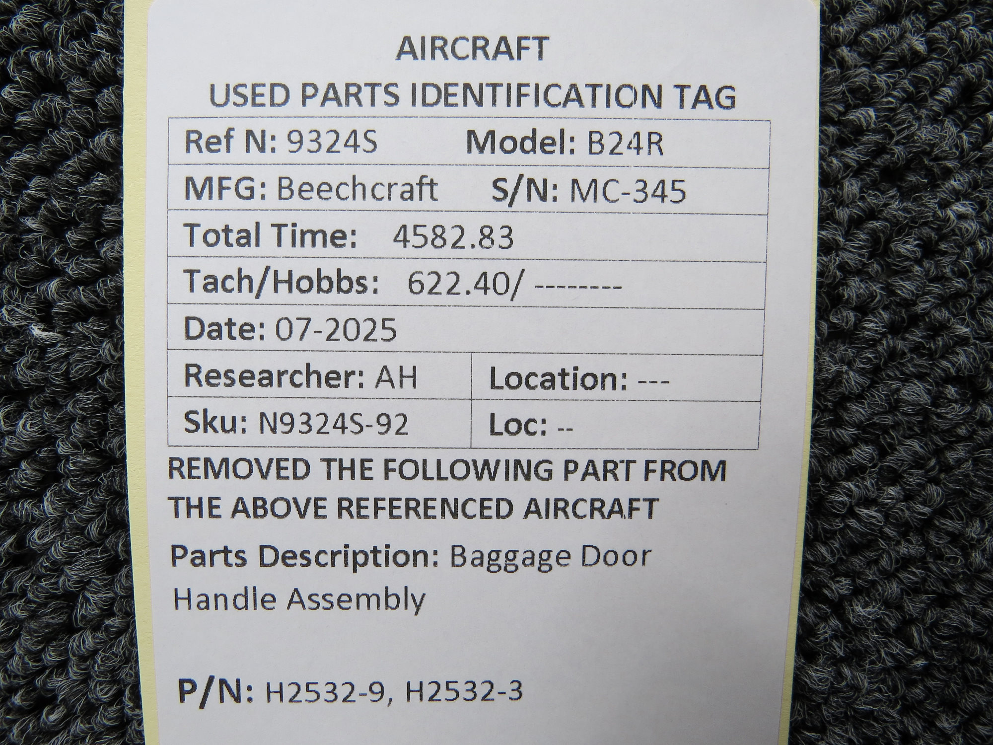 - Baggage Door Handle Assembly Part Number: H2532-9