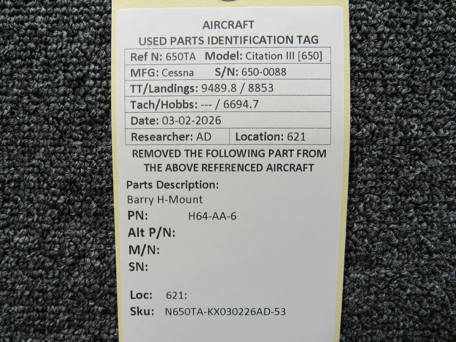 Every part is carefully inspected throughout our process and several times before it goes online. Most items are sold as-removed, just as they came off the aircraft. These parts are not functionally tested. What we do provide is clear photos, full traceability when available, pricing that reflects the as-removed condition, and a no-nonsense 90-day return window.
