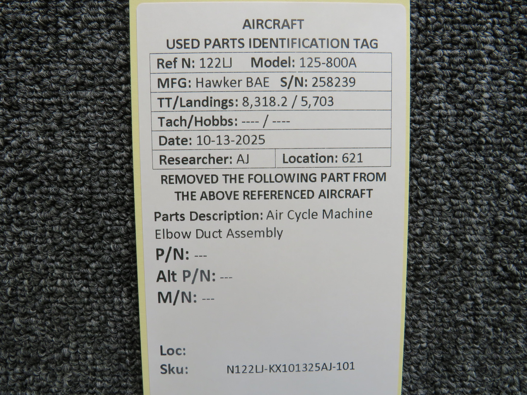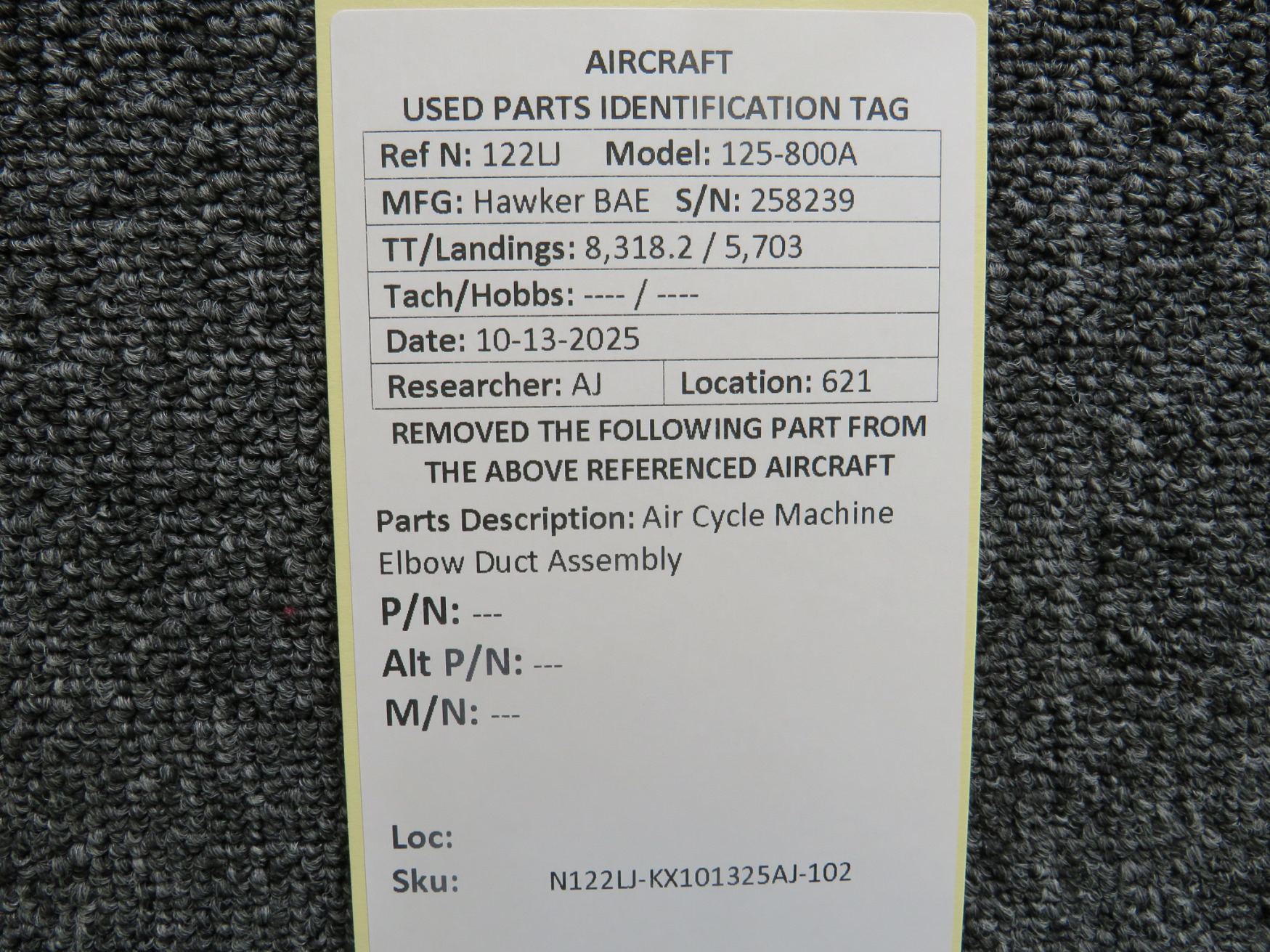 Hawker BAE 125-800A Air Cycle Machine Elbow Duct Assembly